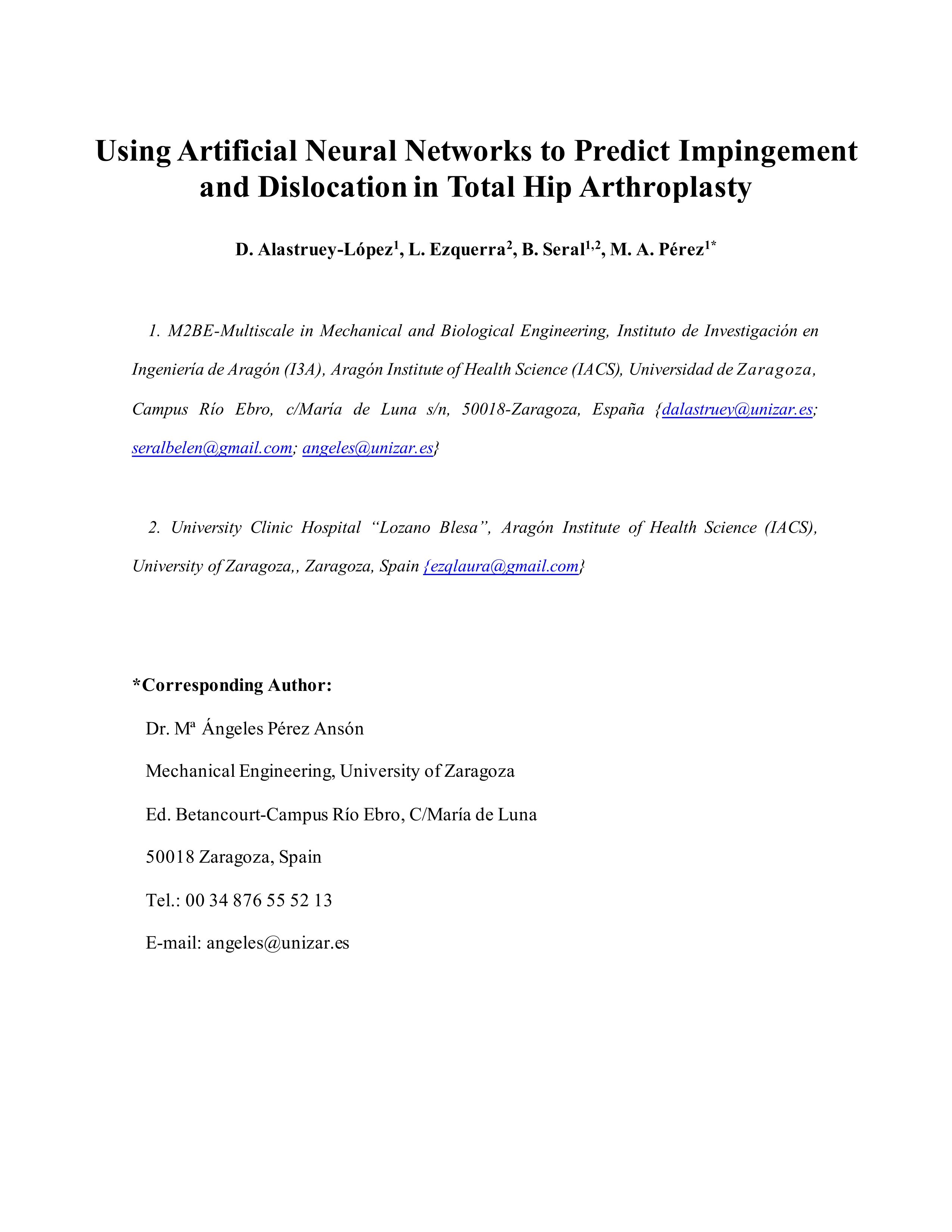 | Página principal > Artículos > Using artificial neural networks to predict impingement and dislocation in total hip arthroplasty |