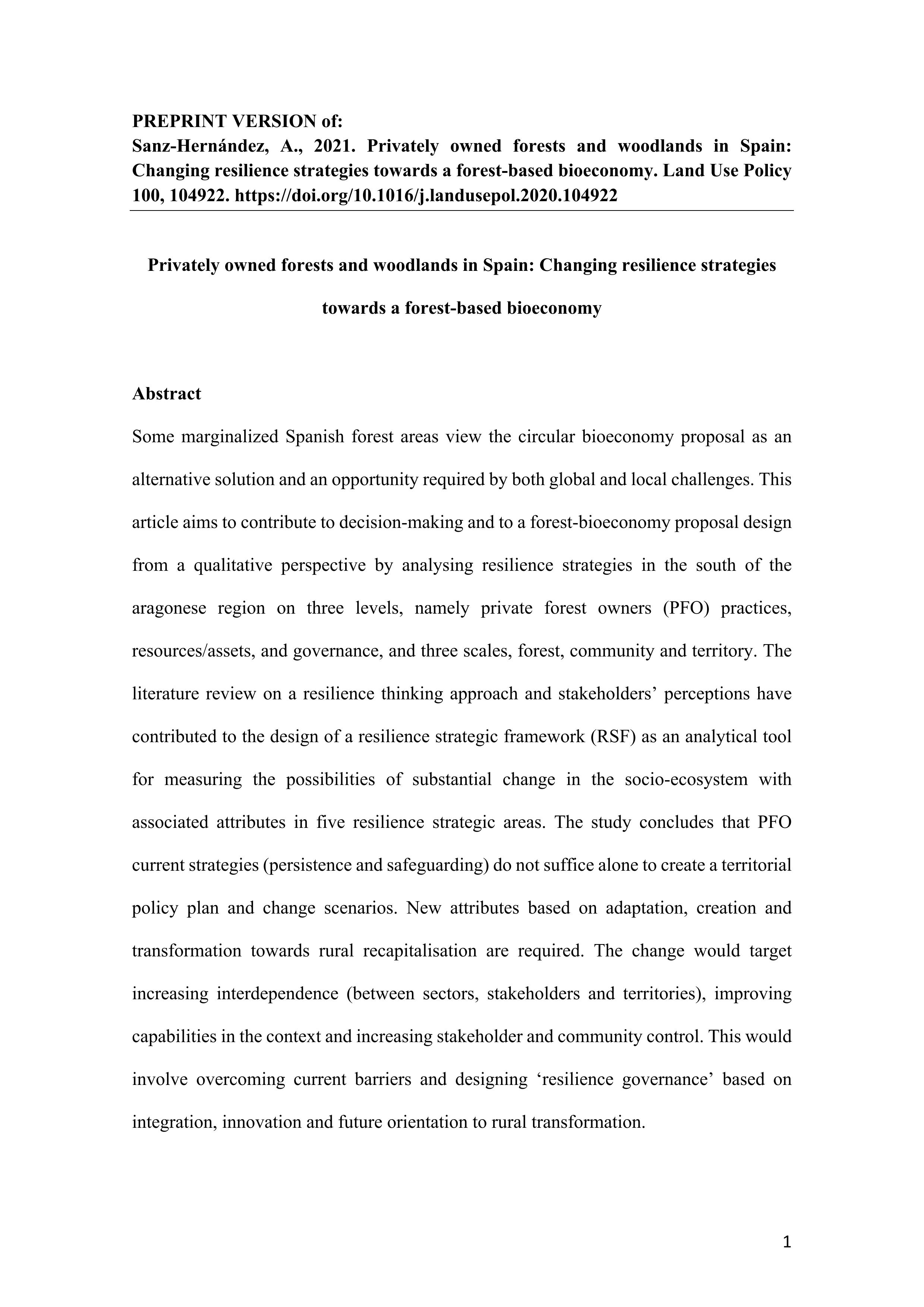 Privately owned forests and woodlands in Spain: Changing resilience strategies towards a forest-based bioeconomy