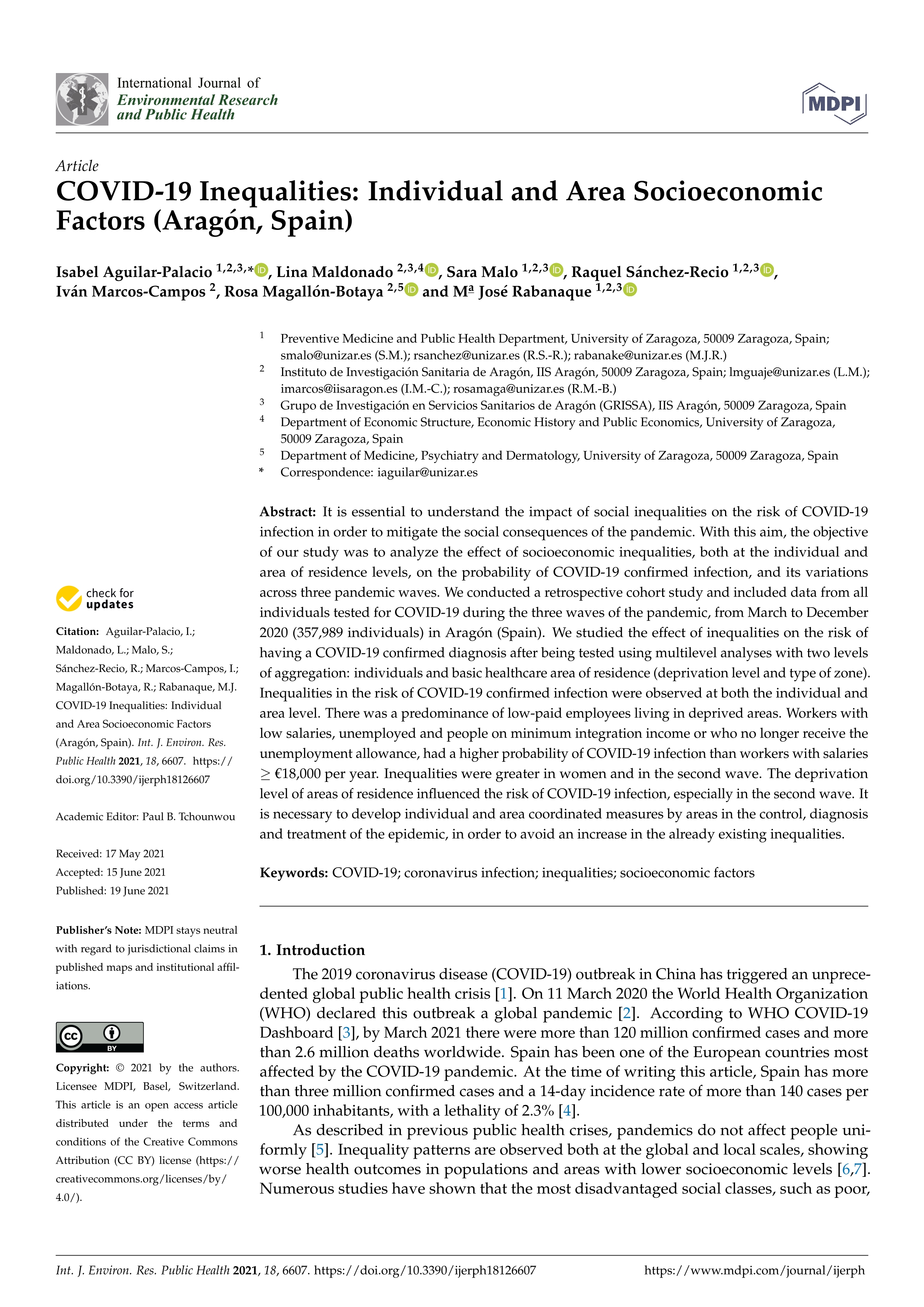 | Página principal > Artículos > COVID-19 inequalities: individual and area socioeconomic factors (Aragón, Spain) |