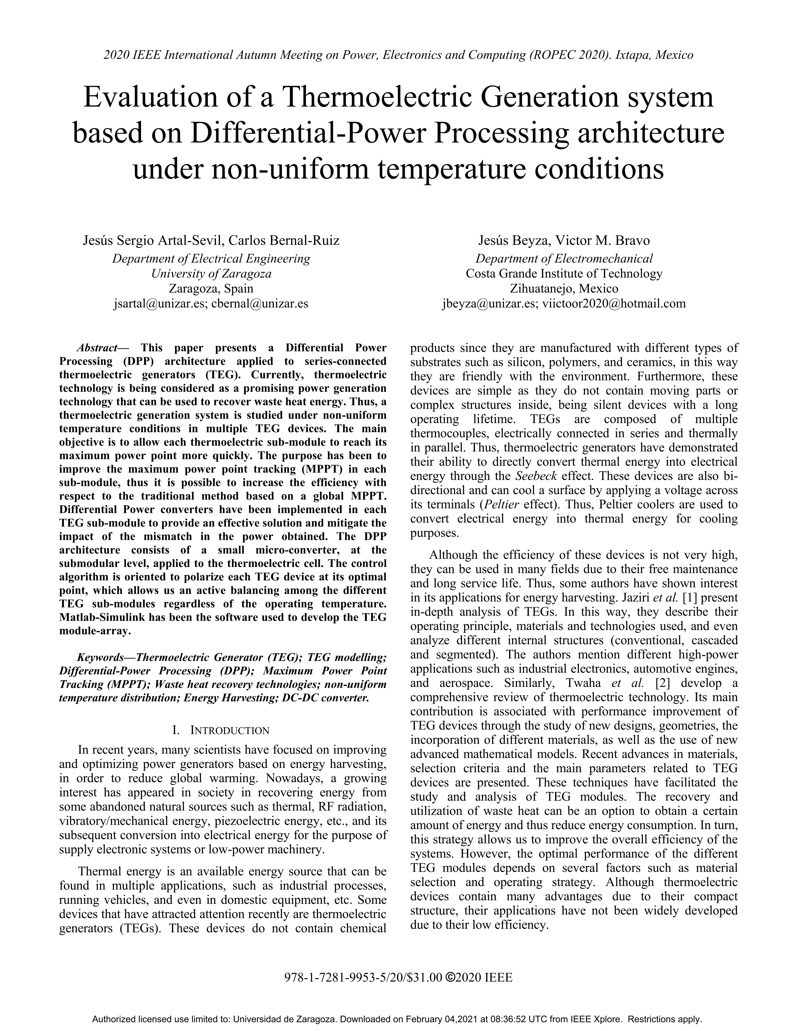 Evaluation of a Thermoelectric Generation system based on Differential-Power Processing architecture under non-uniform temperature conditions