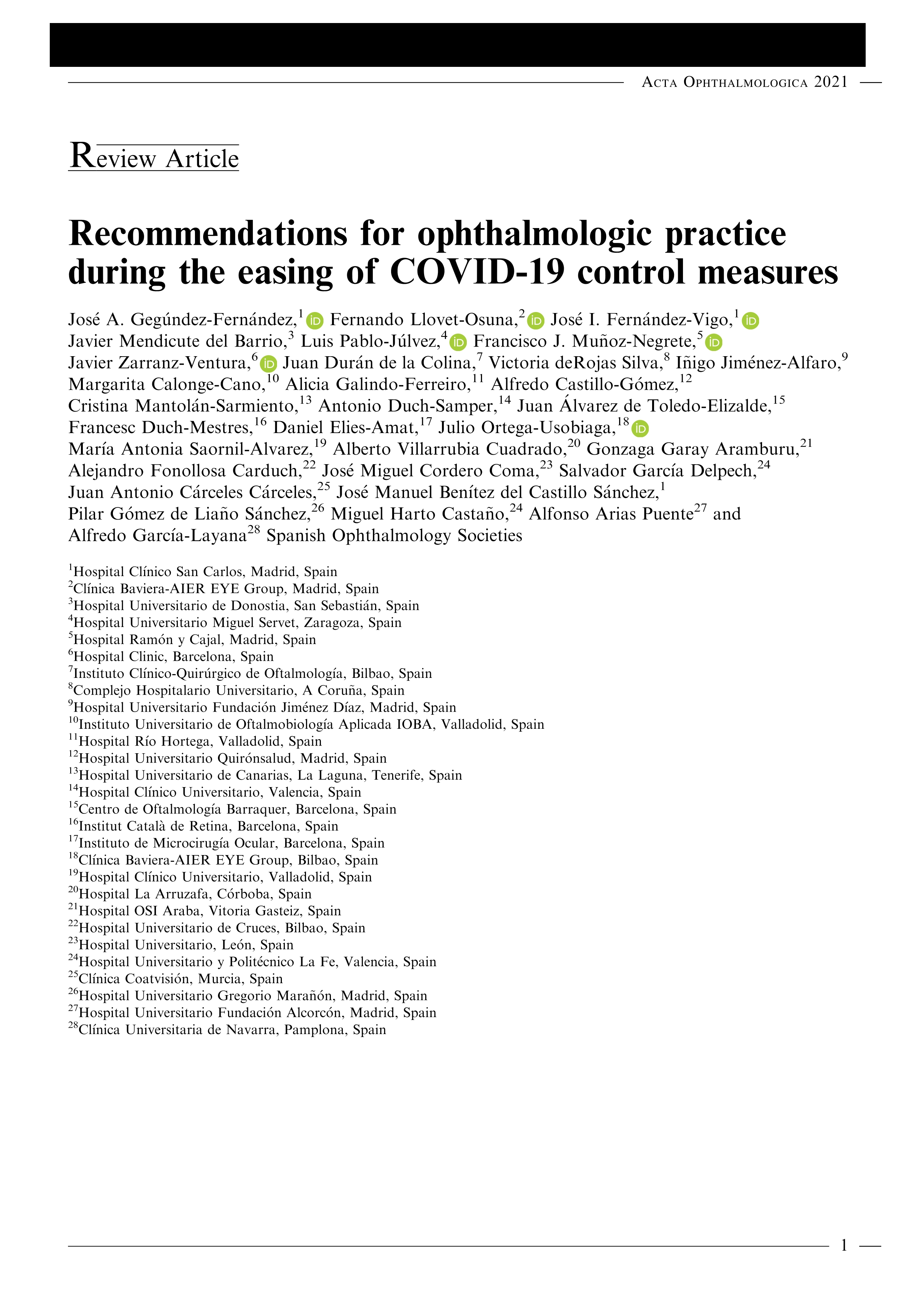 Recommendations for ophthalmologic practice during the easing of COVID-19 control measures