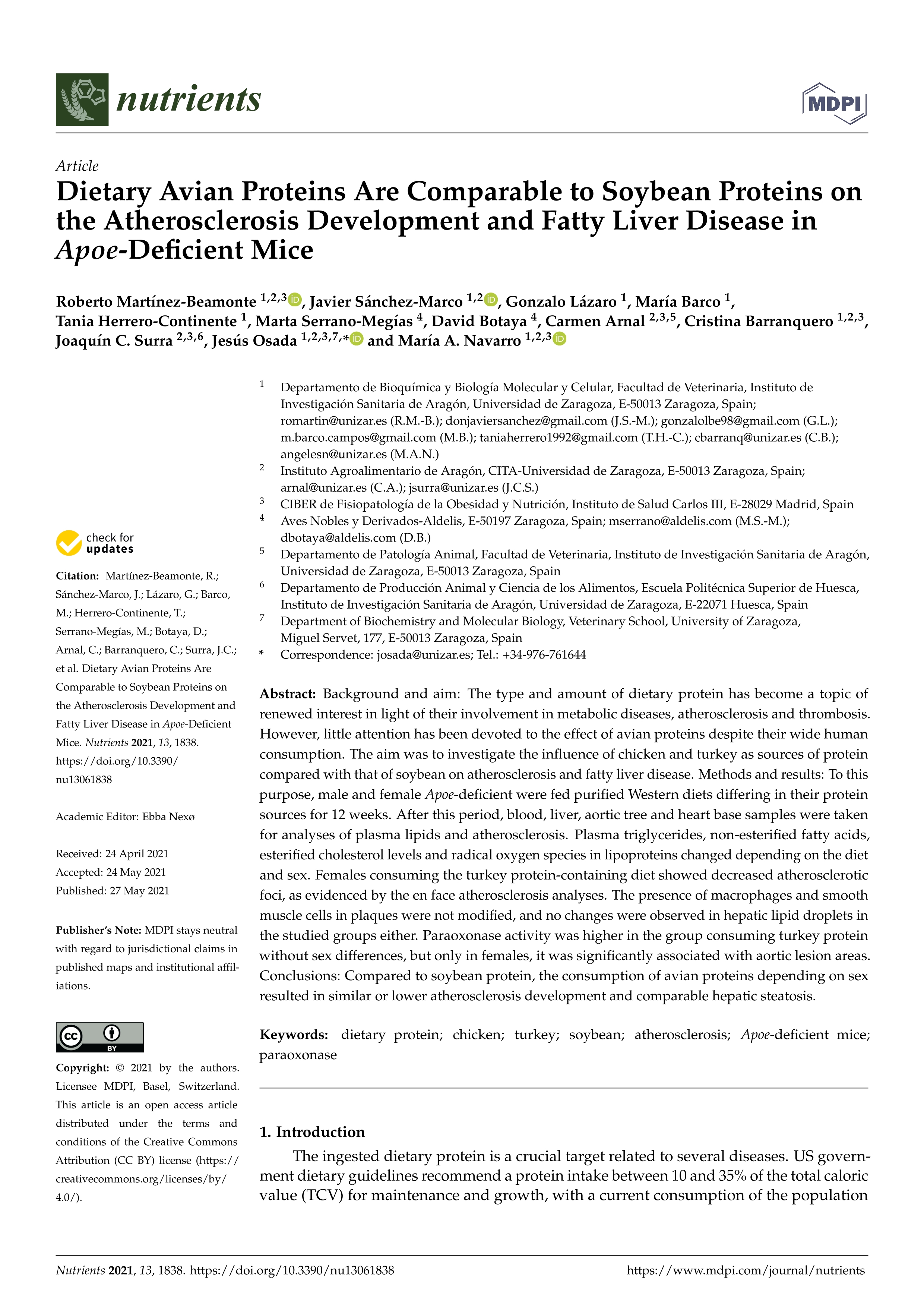 Dietary avian proteins are comparable to soybean proteins on the atherosclerosis development and fatty liver disease in apoe-deficient mice