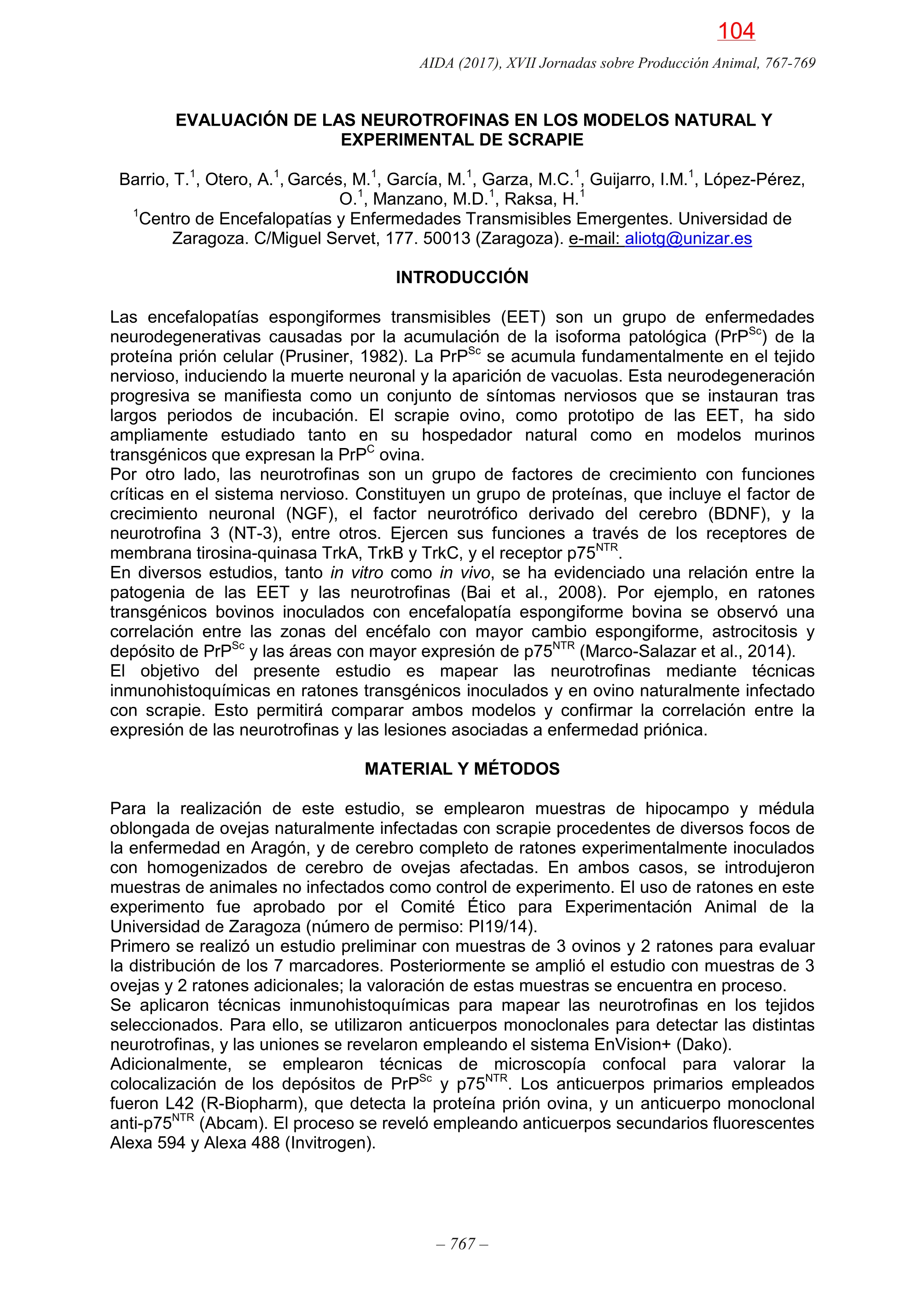 Evaluación de las neurotrofinas en los modelos natural y experimental de scrapie