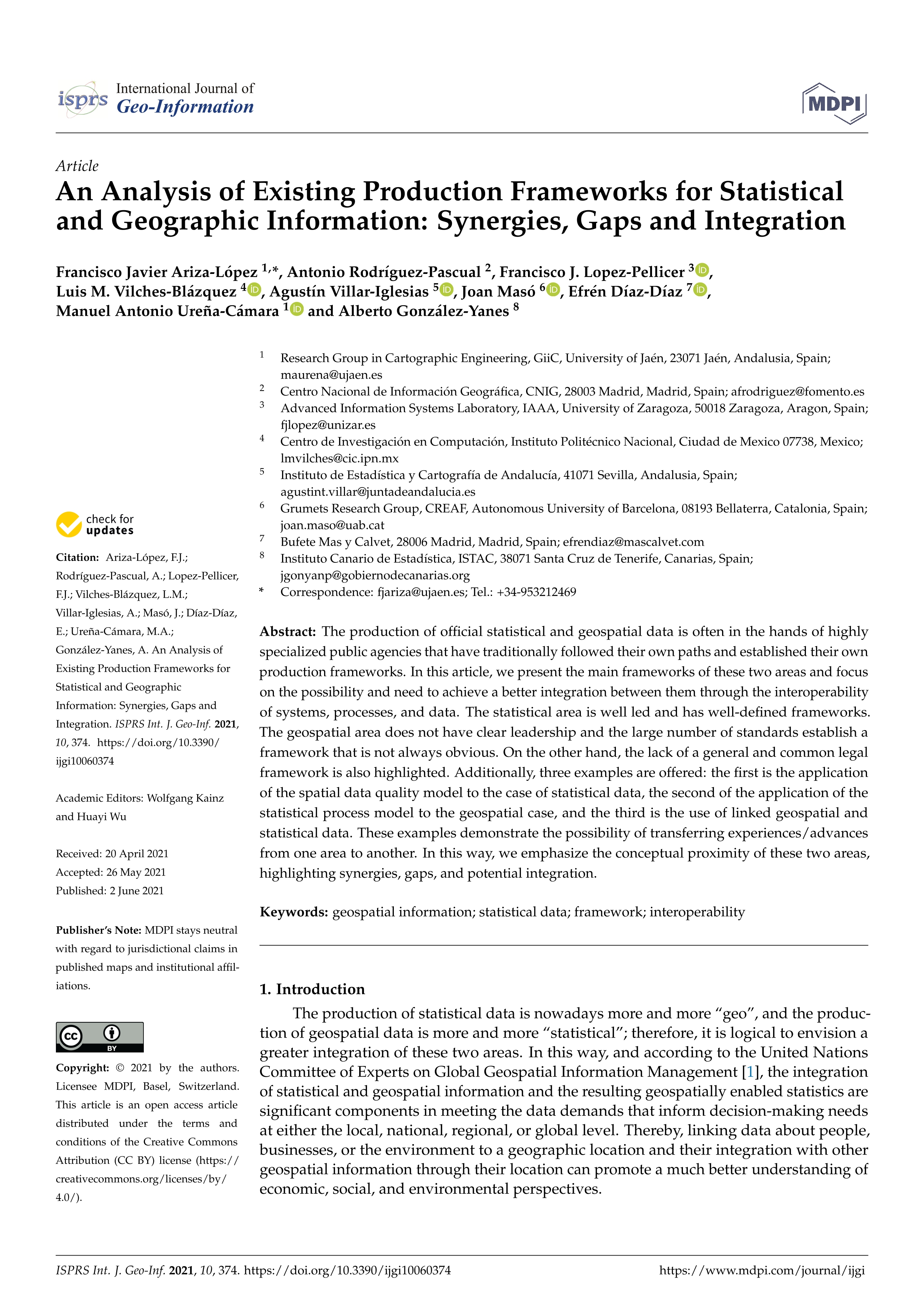 An analysis of existing production frameworks for statistical and geographic information: Synergies, gaps and integration
