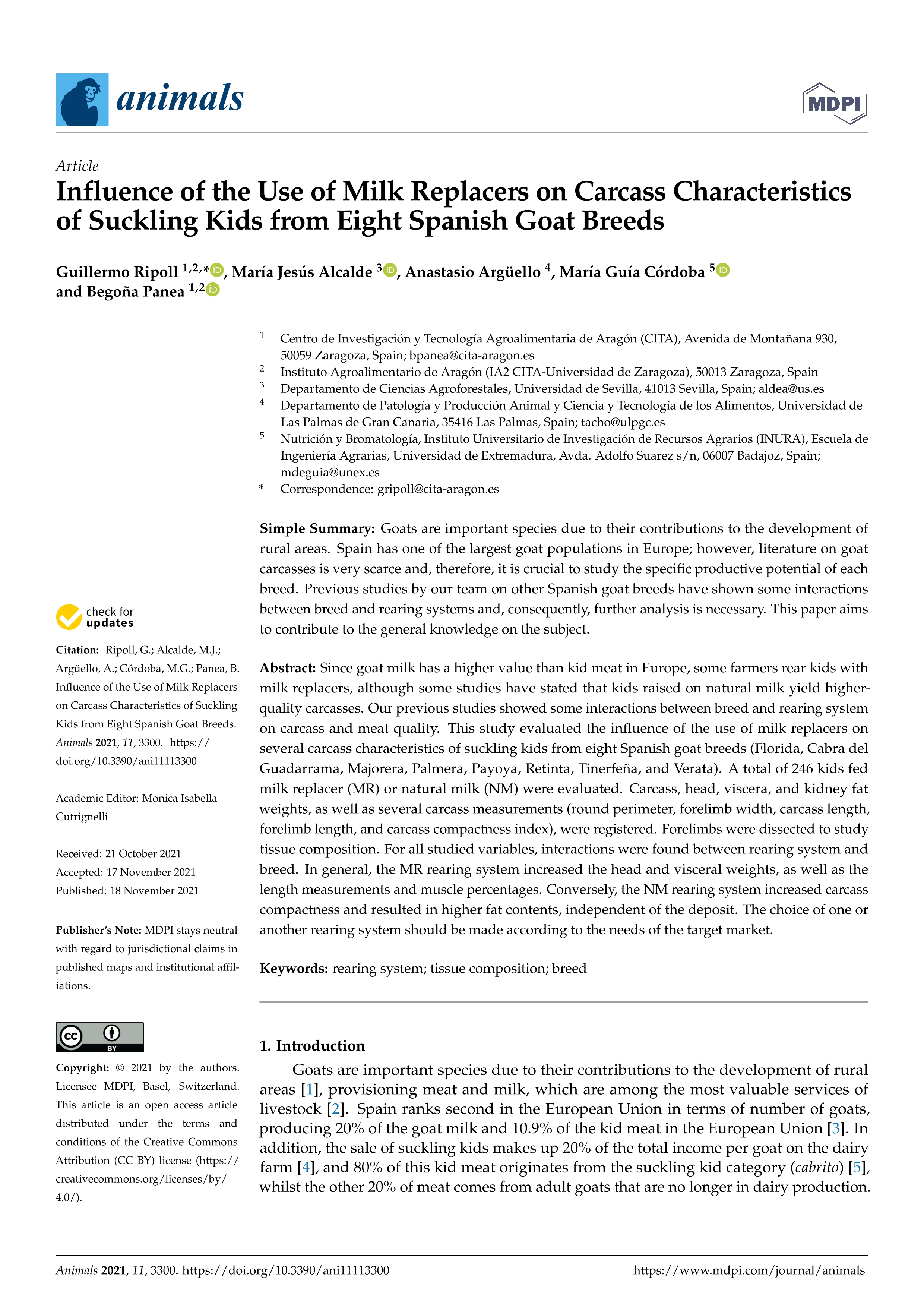 Influence of the use of milk replacers on carcass characteristics of suckling kids from eight spanish goat breeds