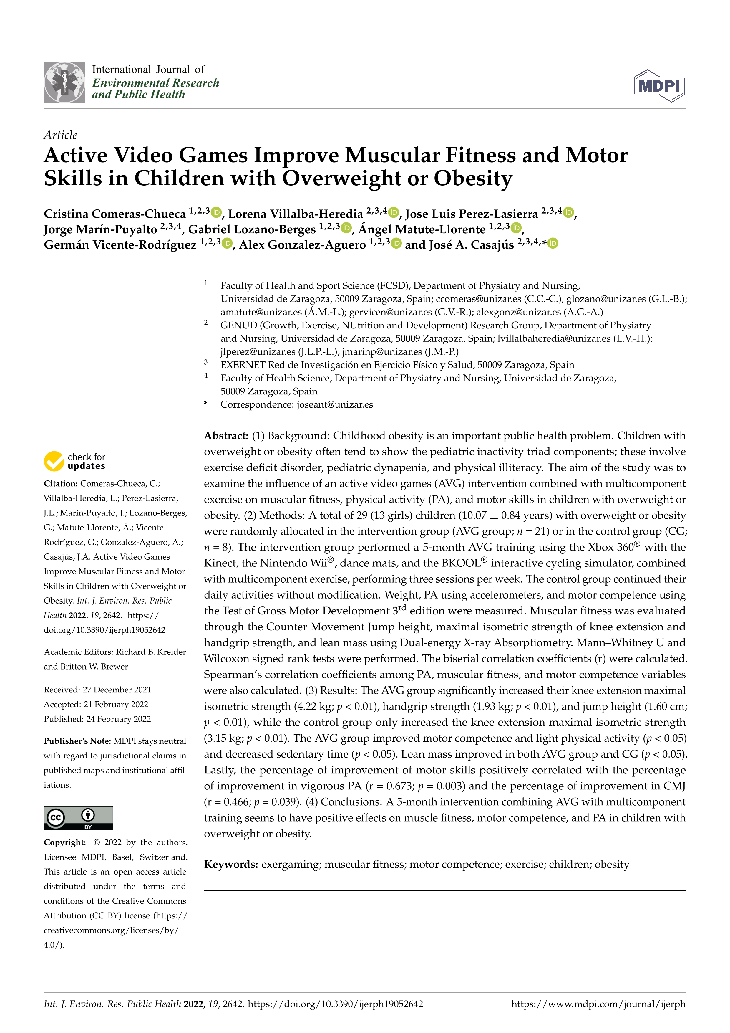 Active video games improve muscular fitness and motor skills in children with overweight or obesity