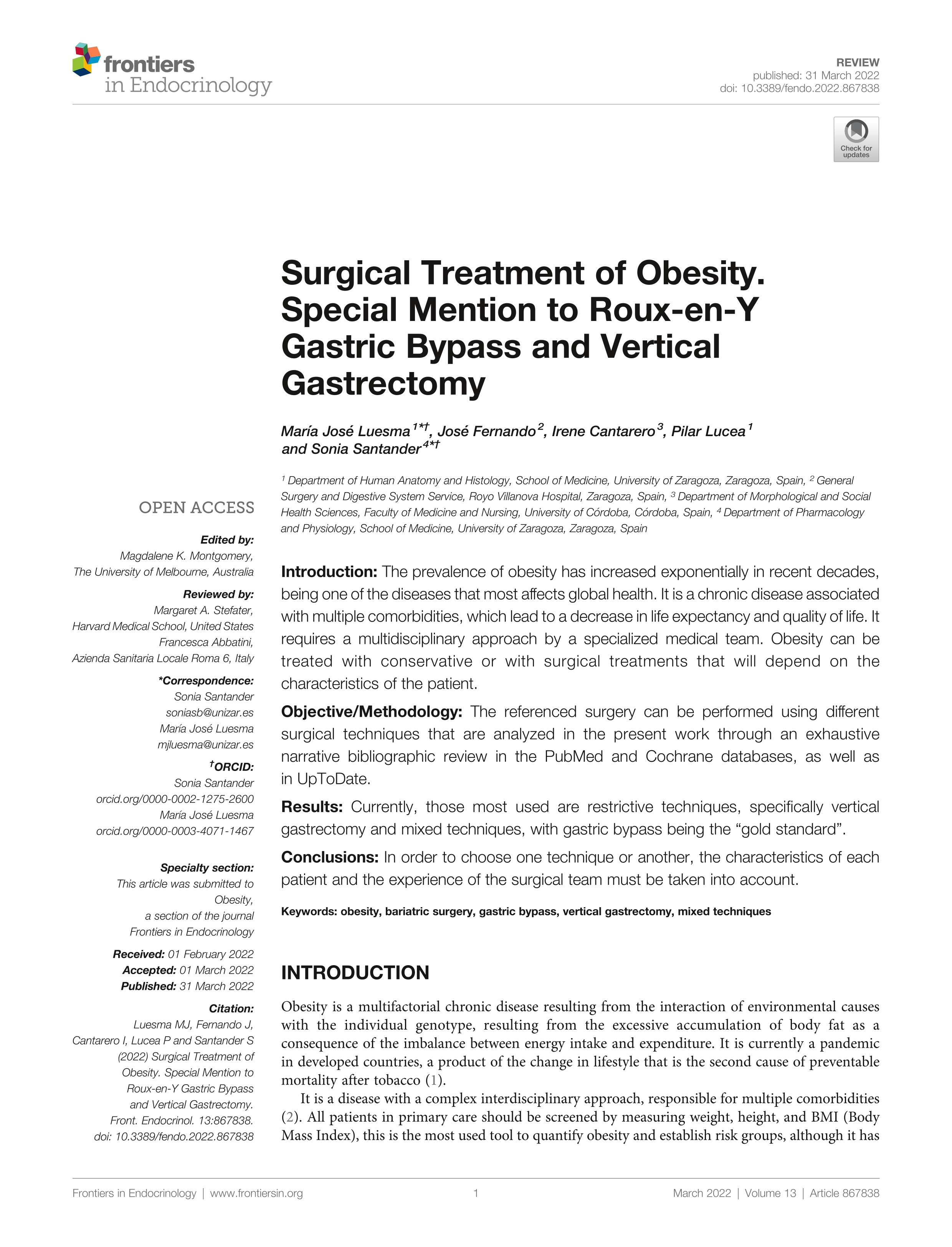| Página principal > Artículos > Surgical Treatment of Obesity. Special Mention to Roux-en-Y Gastric Bypass and Vertical Gastrectomy |