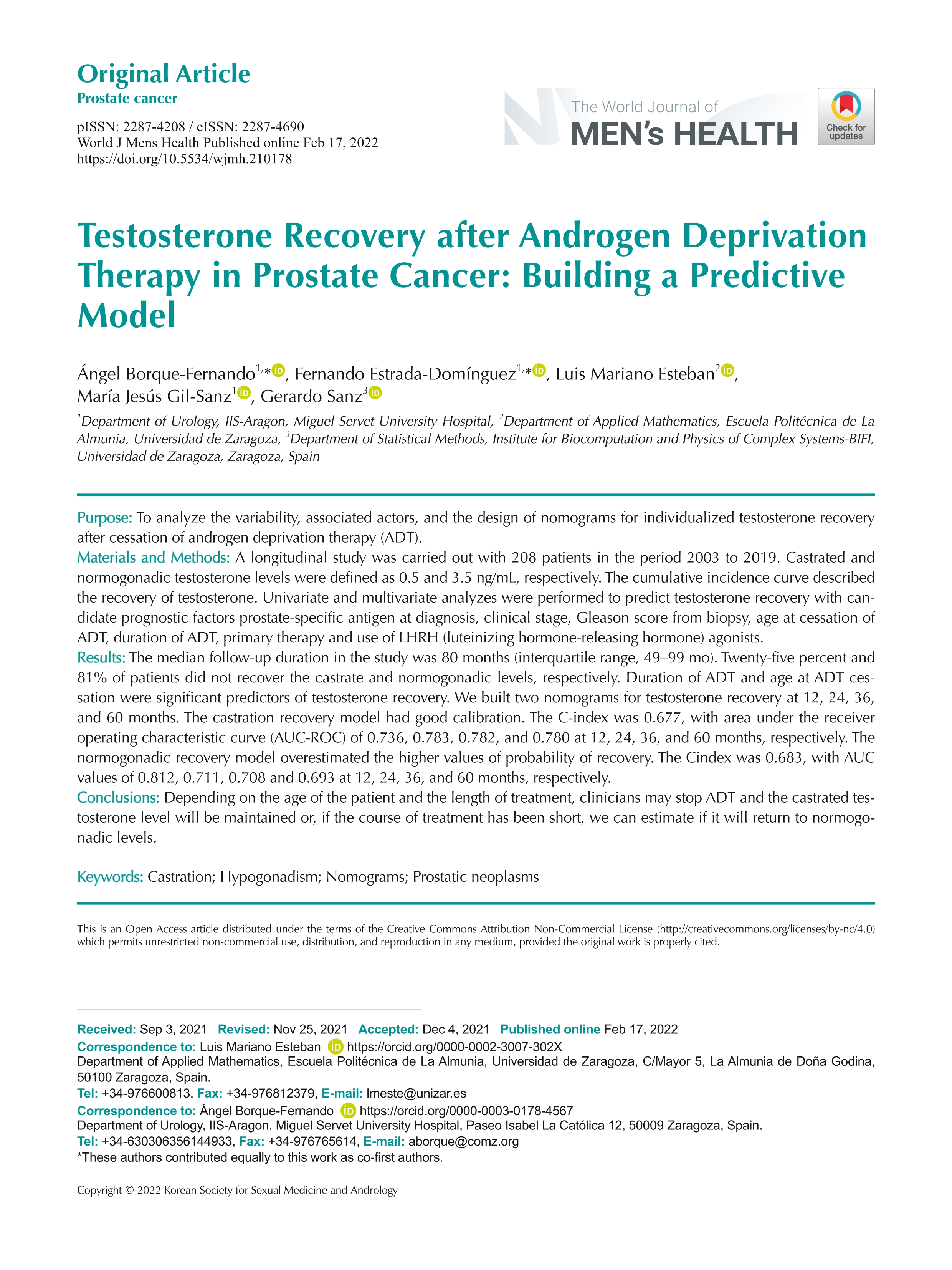 Testosterone recovery after androgen deprivation therapy in prostate cancer: building a predictive model
