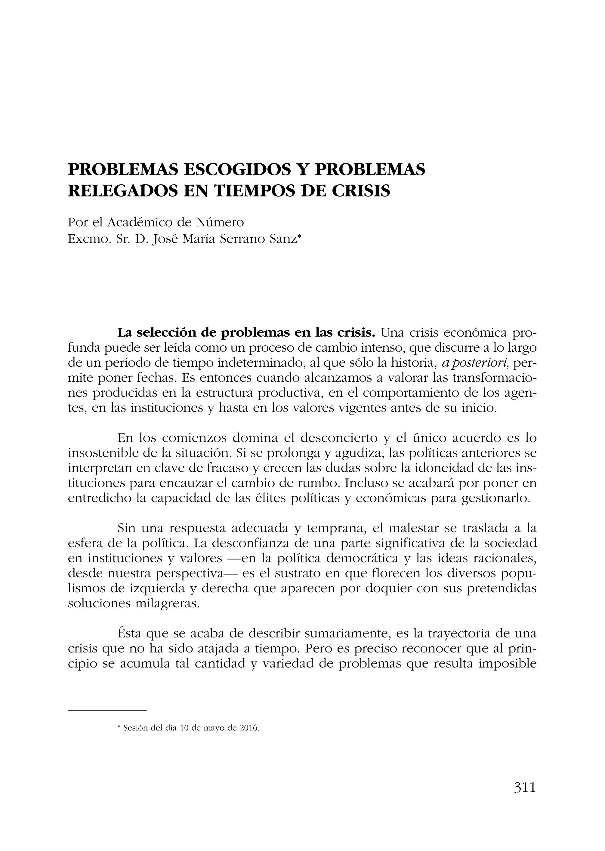 Problemas escogidos y problemas relegados en tiempos de crisis