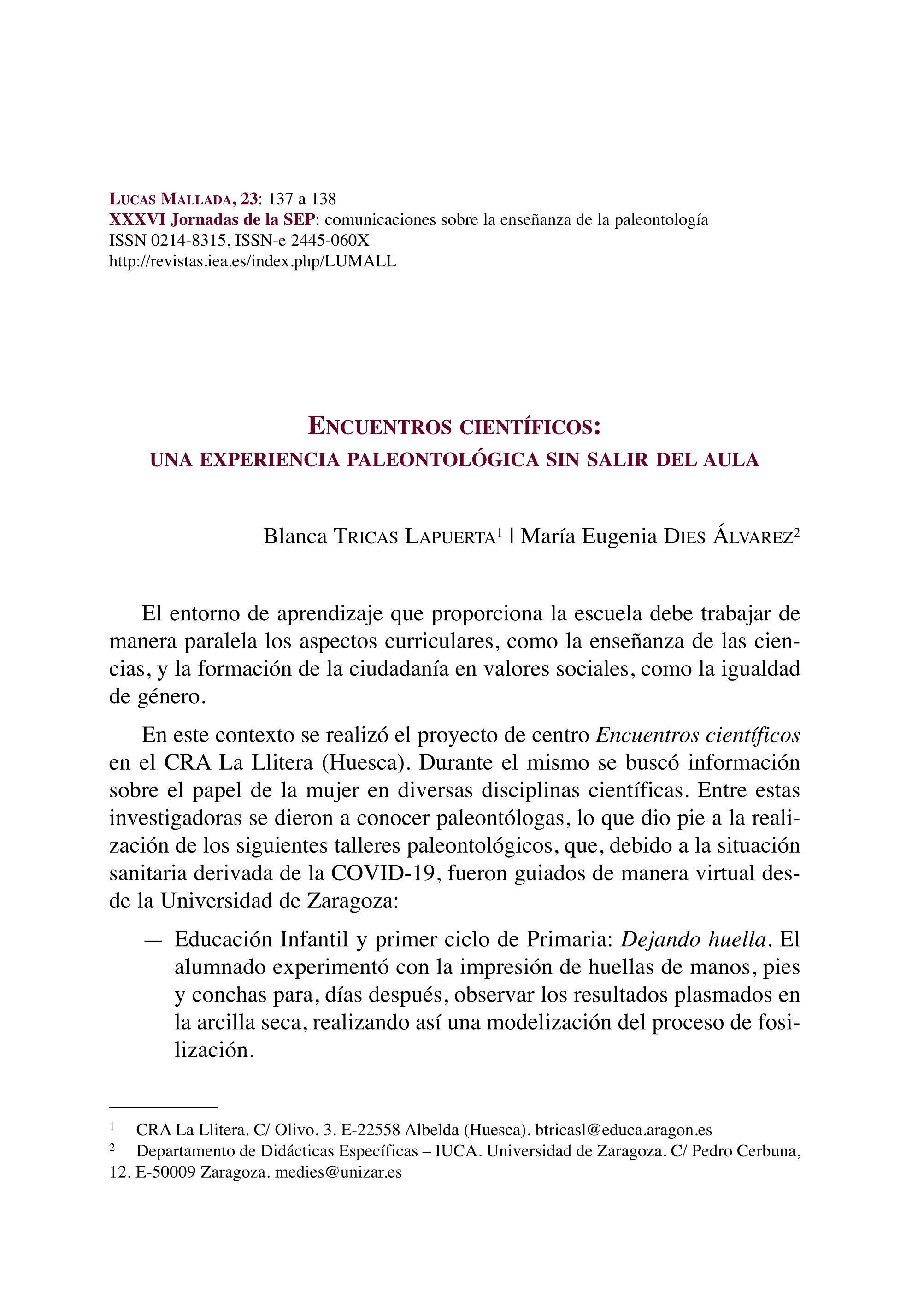Encuentros científicos: una experiencia paleontológica sin salir del aula