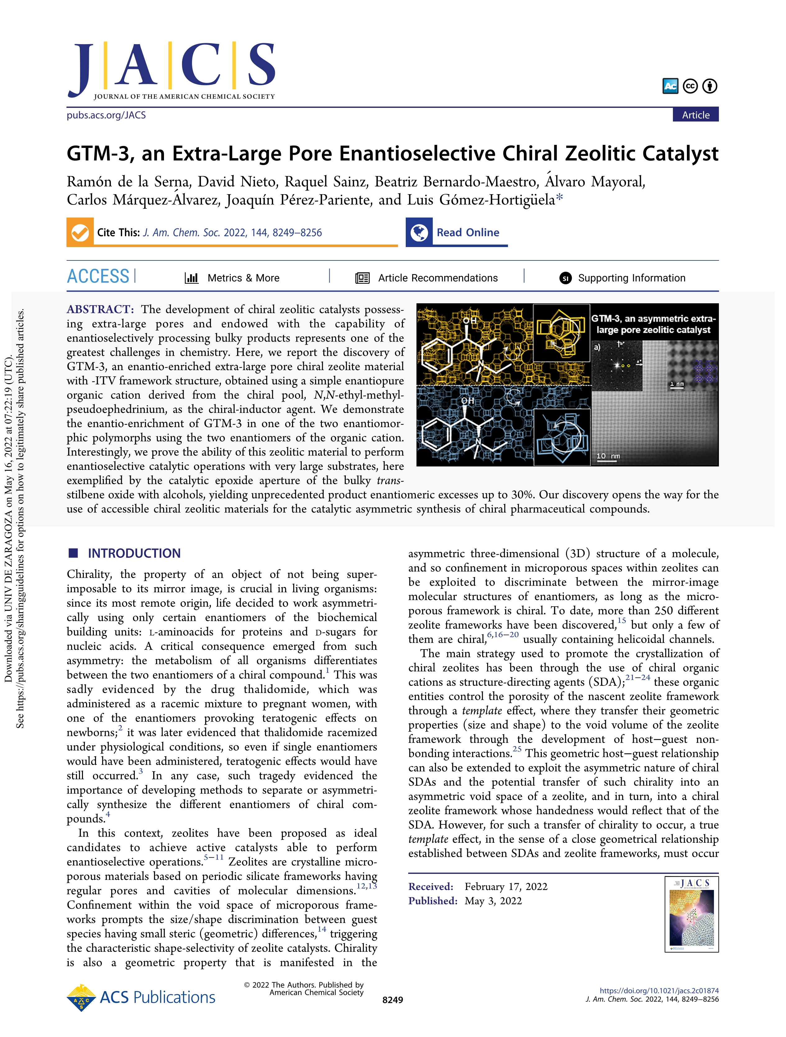 GTM-3, an extra-large pore enantioselective chiral zeolitic catalyst