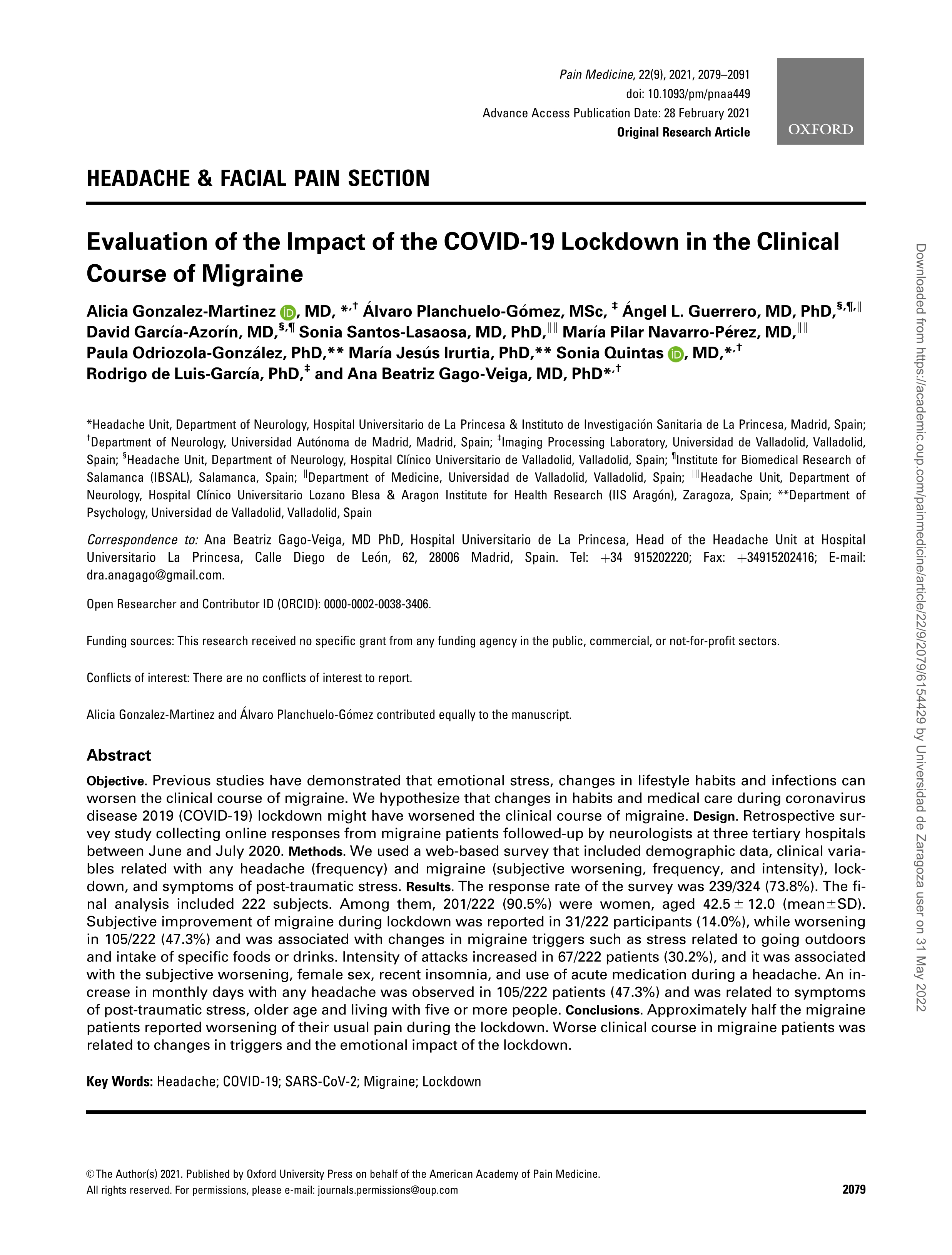 Evaluation of the Impact of the COVID-19 Lockdown in the Clinical Course of Migraine