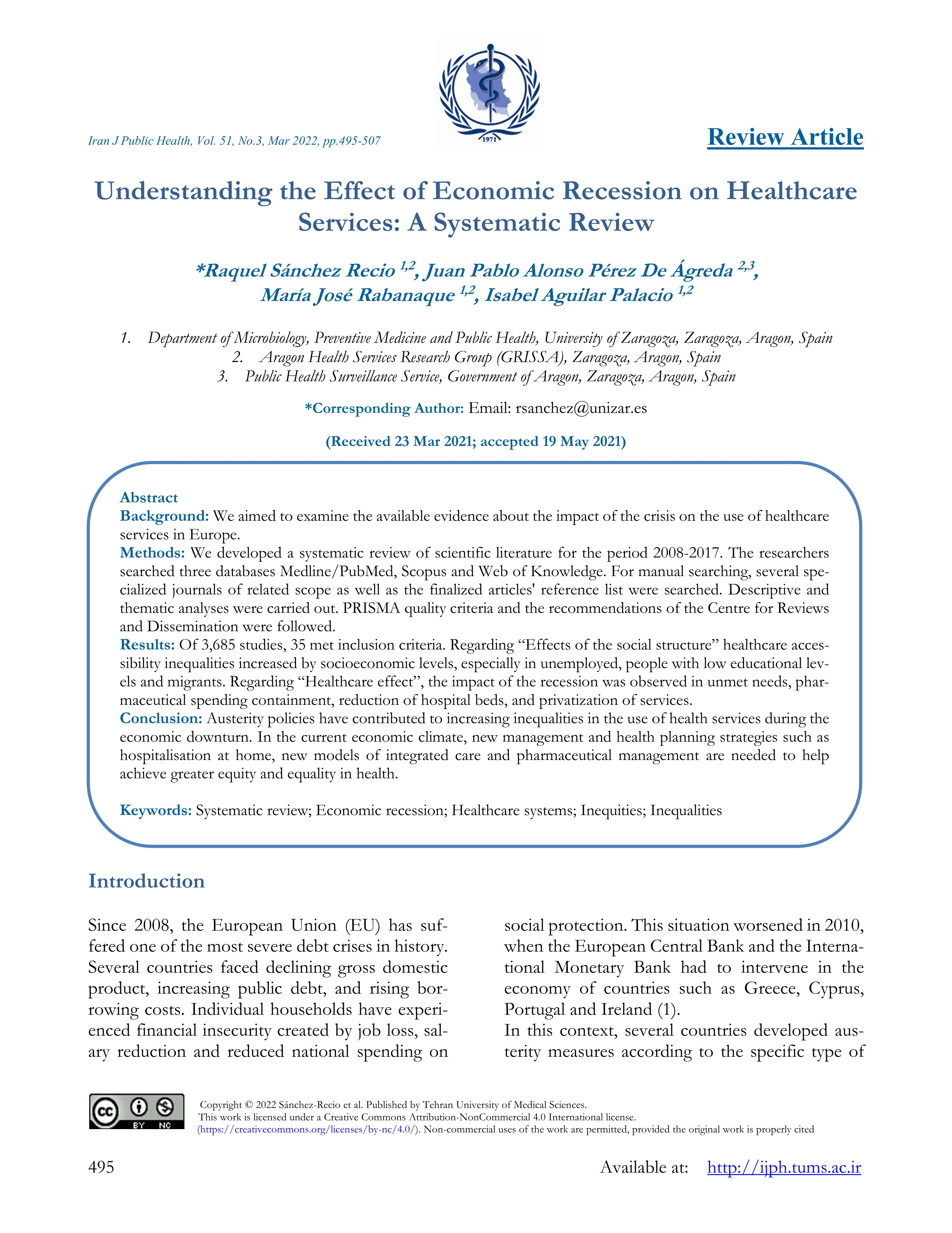 Understanding the effect of economic recession on healthcare services: a systematic review