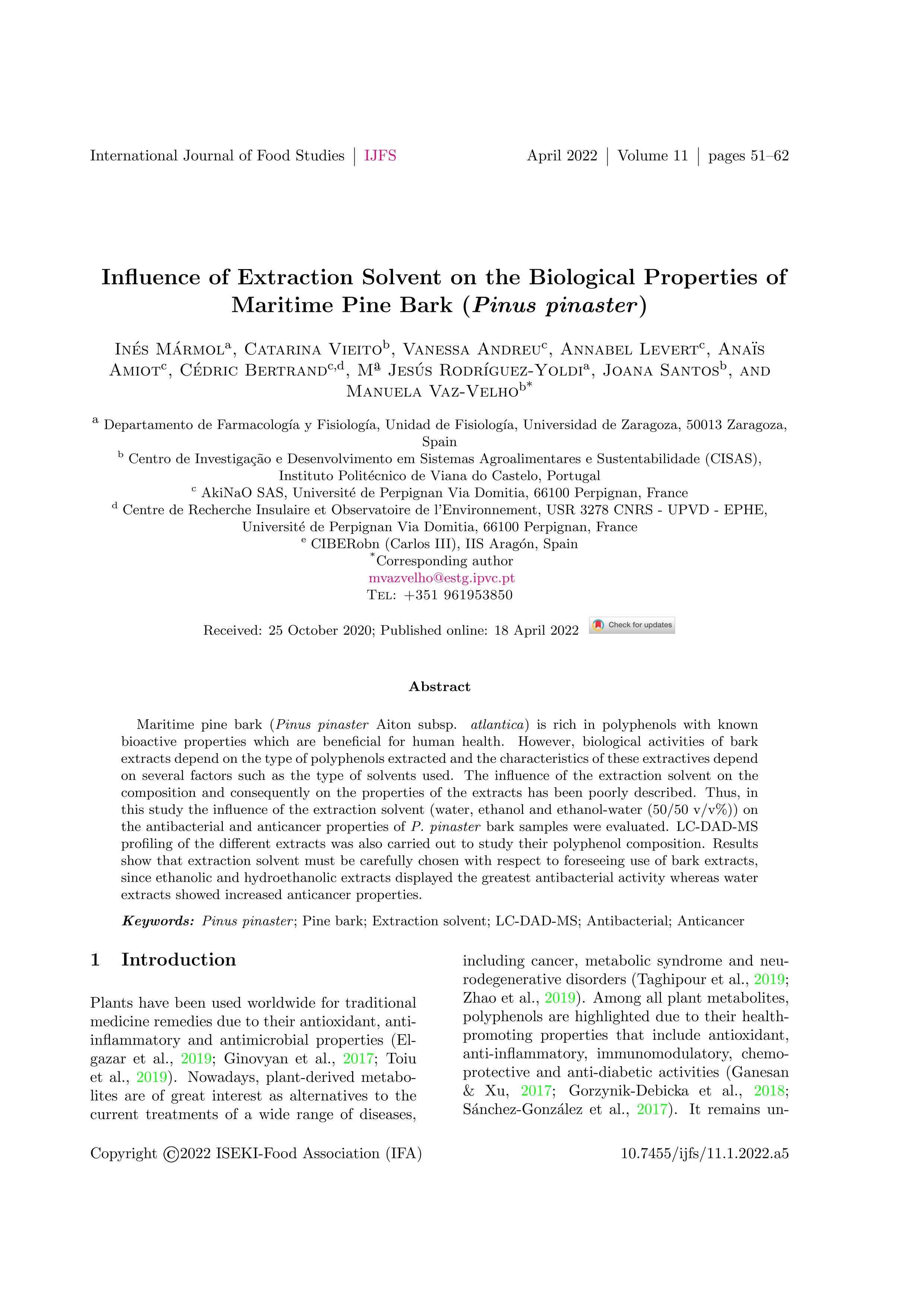 Influence of Extraction Solvent on the Biological Properties of Maritime Pine Bark (Pinus pinaster)