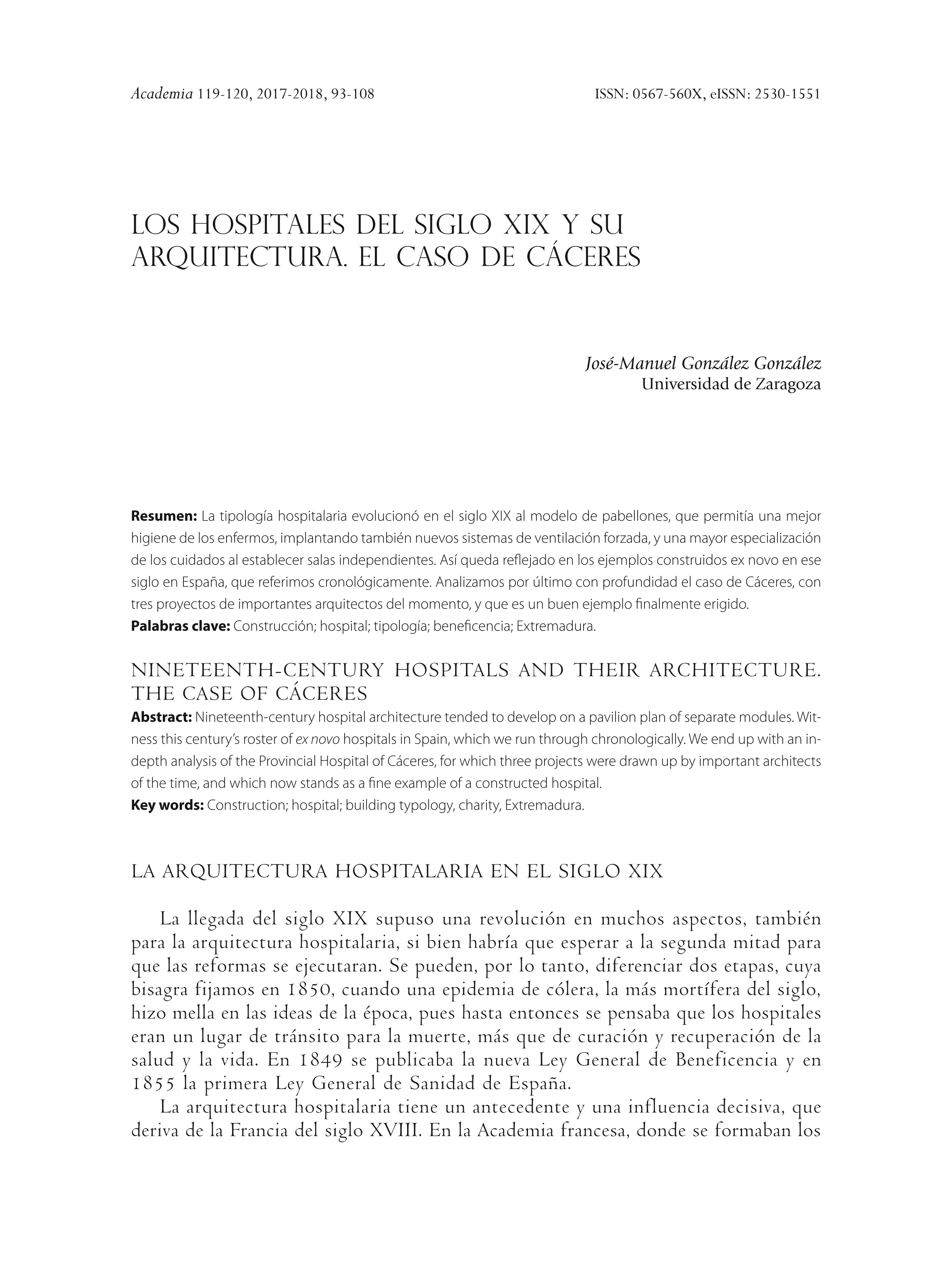 Los hospitales del siglo XIX y su arquitectura: El caso de Cáceres