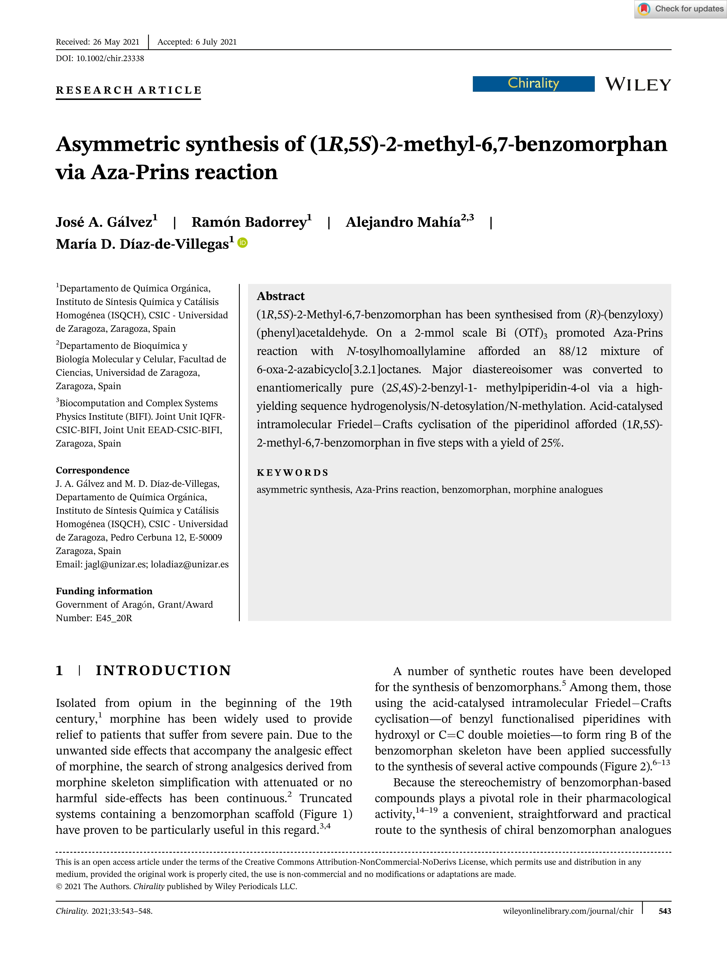 Asymmetric synthesis of (1R, 5S)-2-methyl-6, 7-benzomorphan via Aza-Prins reaction