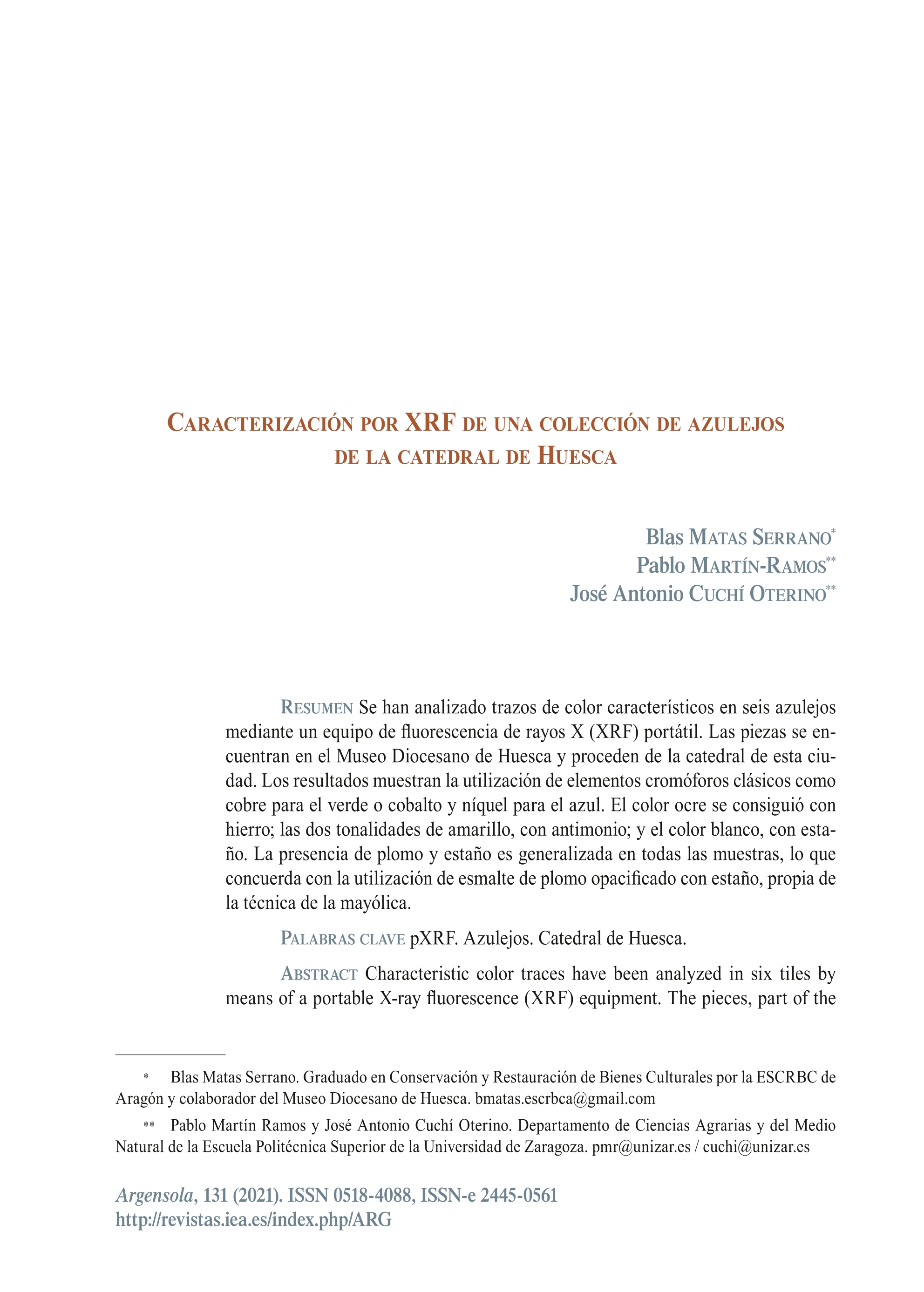 Caracterización por XRF de una colección de azulejos de la catedral de Huesca