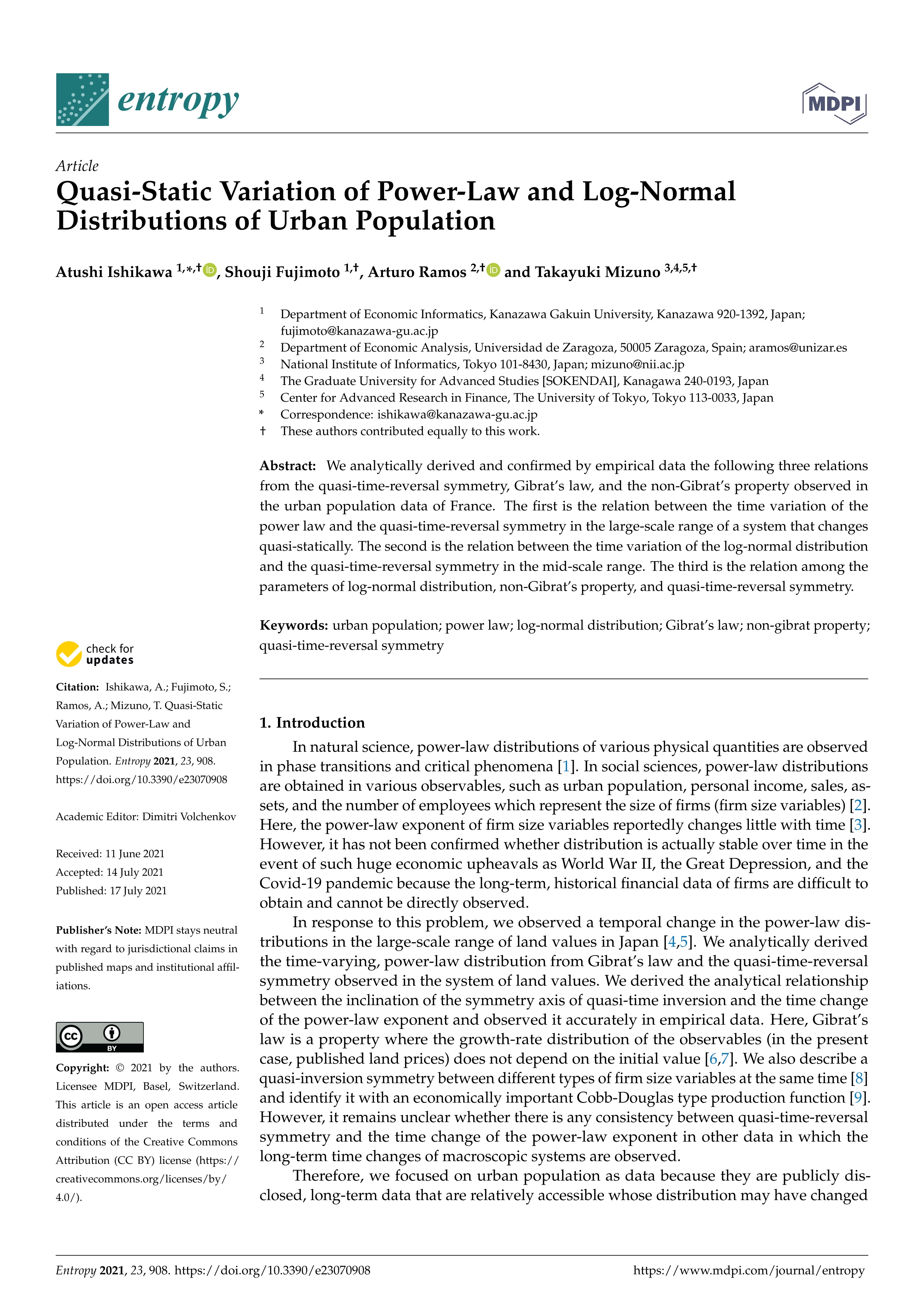 Quasi-static variation of power-law and log-normal distributions of urban population
