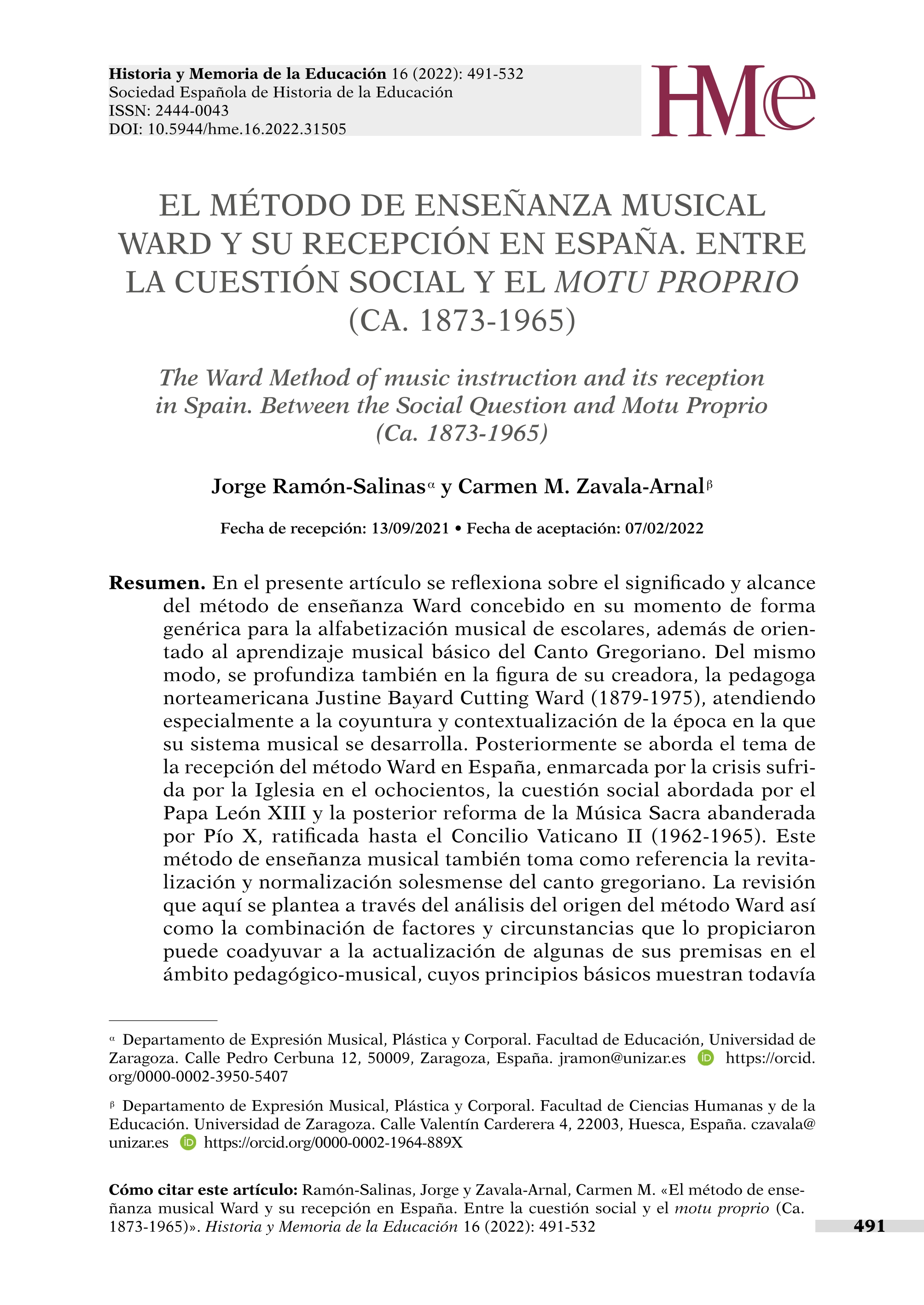 El método de enseñanza musical Ward y su recepción en España. Entre la cuestión social y el motu proprio (Ca. 187-1965)