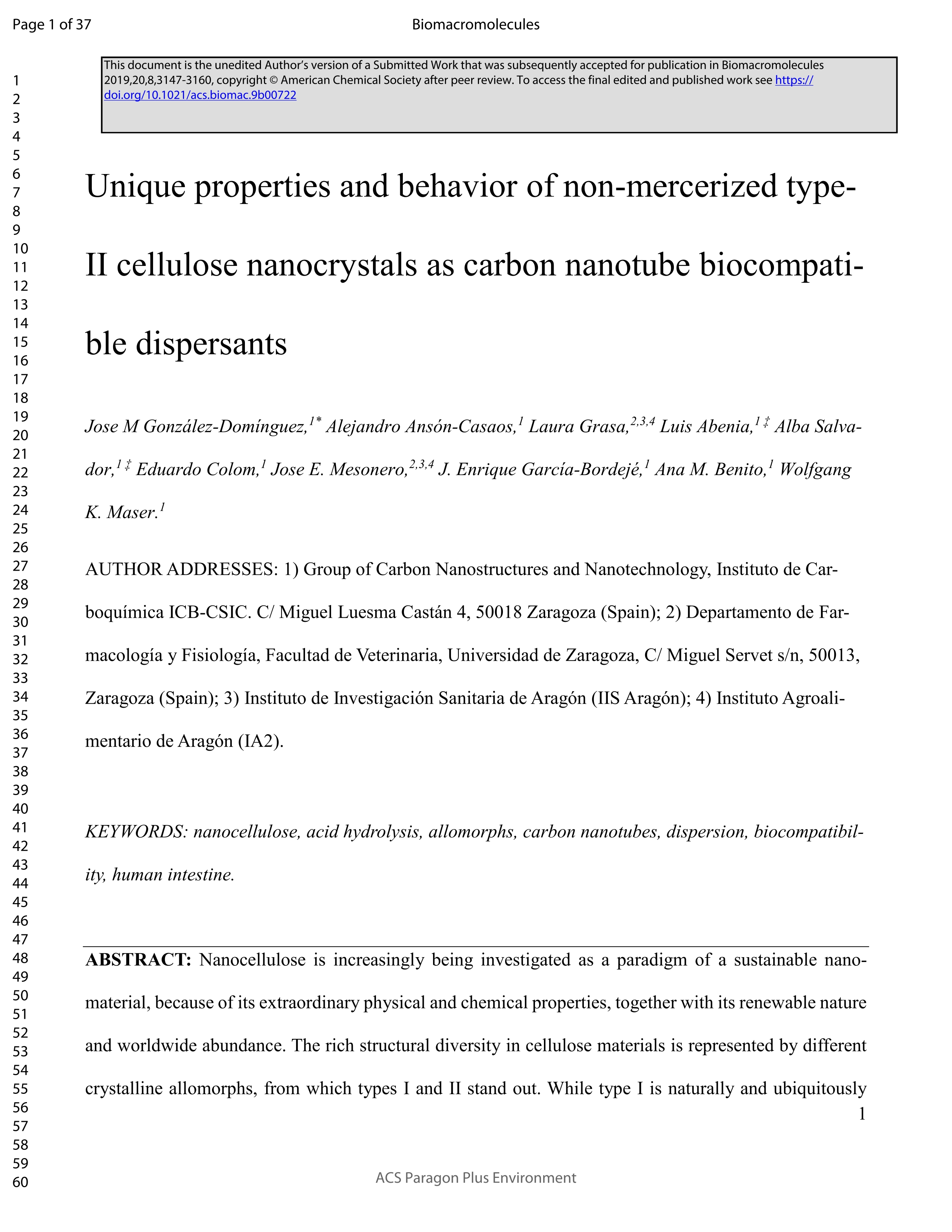 Unique properties and behavior of nonmercerized type-ii cellulose nanocrystals as carbon nanotube biocompatible dispersants