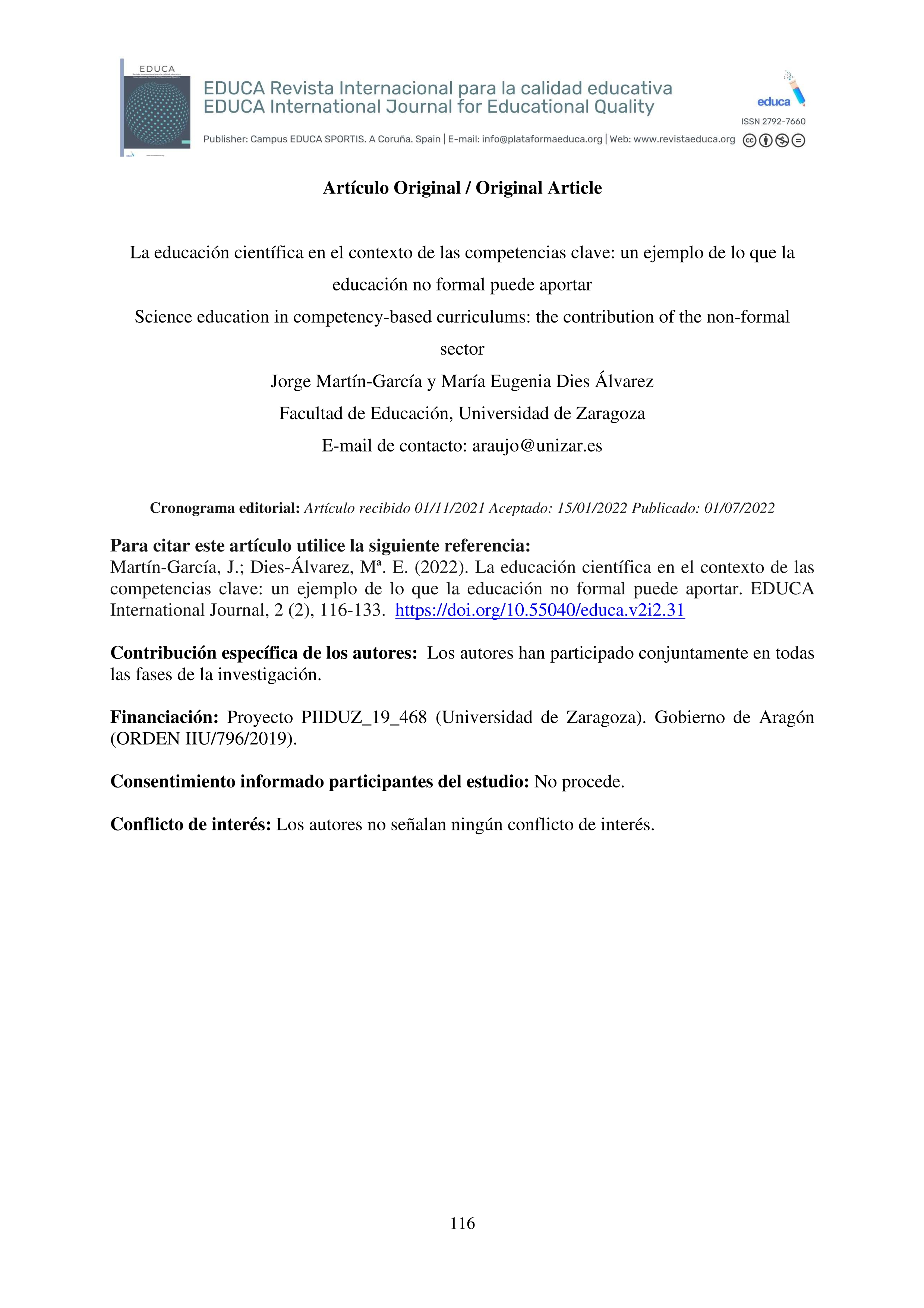 La educación científica en el contexto de las competencias clave: un ejemplo de lo que la educación no formal puede aportar.