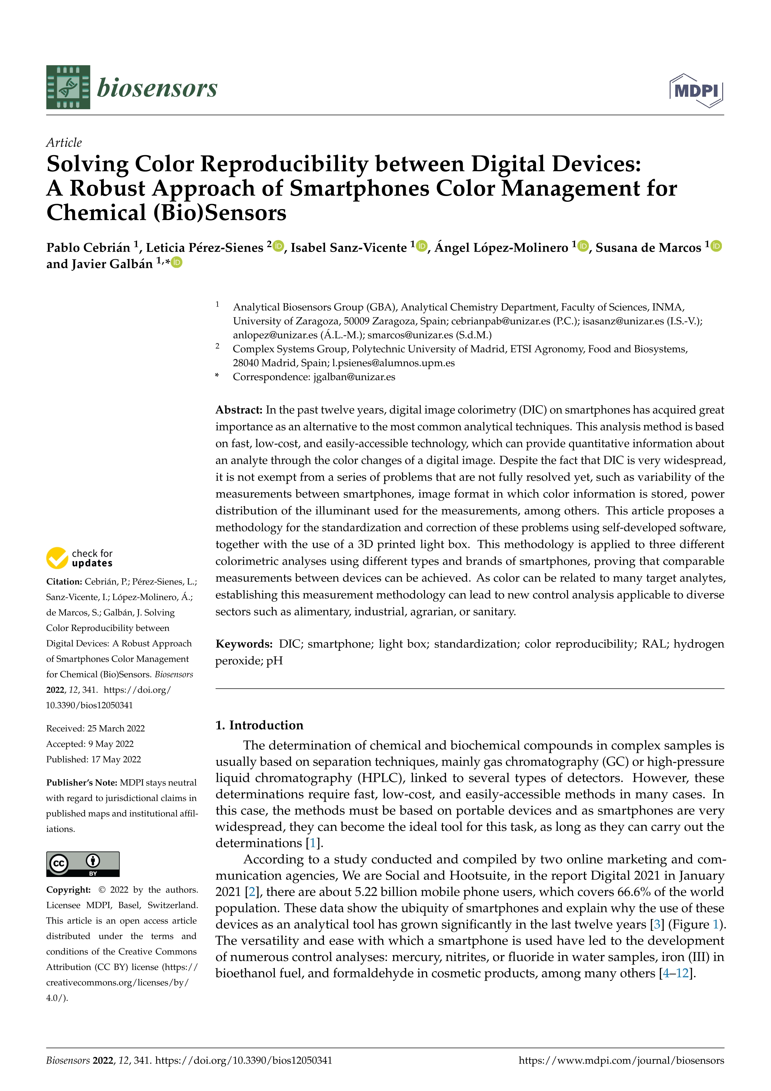 | Página principal > Artículos > Solving Color Reproducibility between Digital Devices: A Robust Approach of Smartphones Color Management for Chemical (Bio)Sensors |