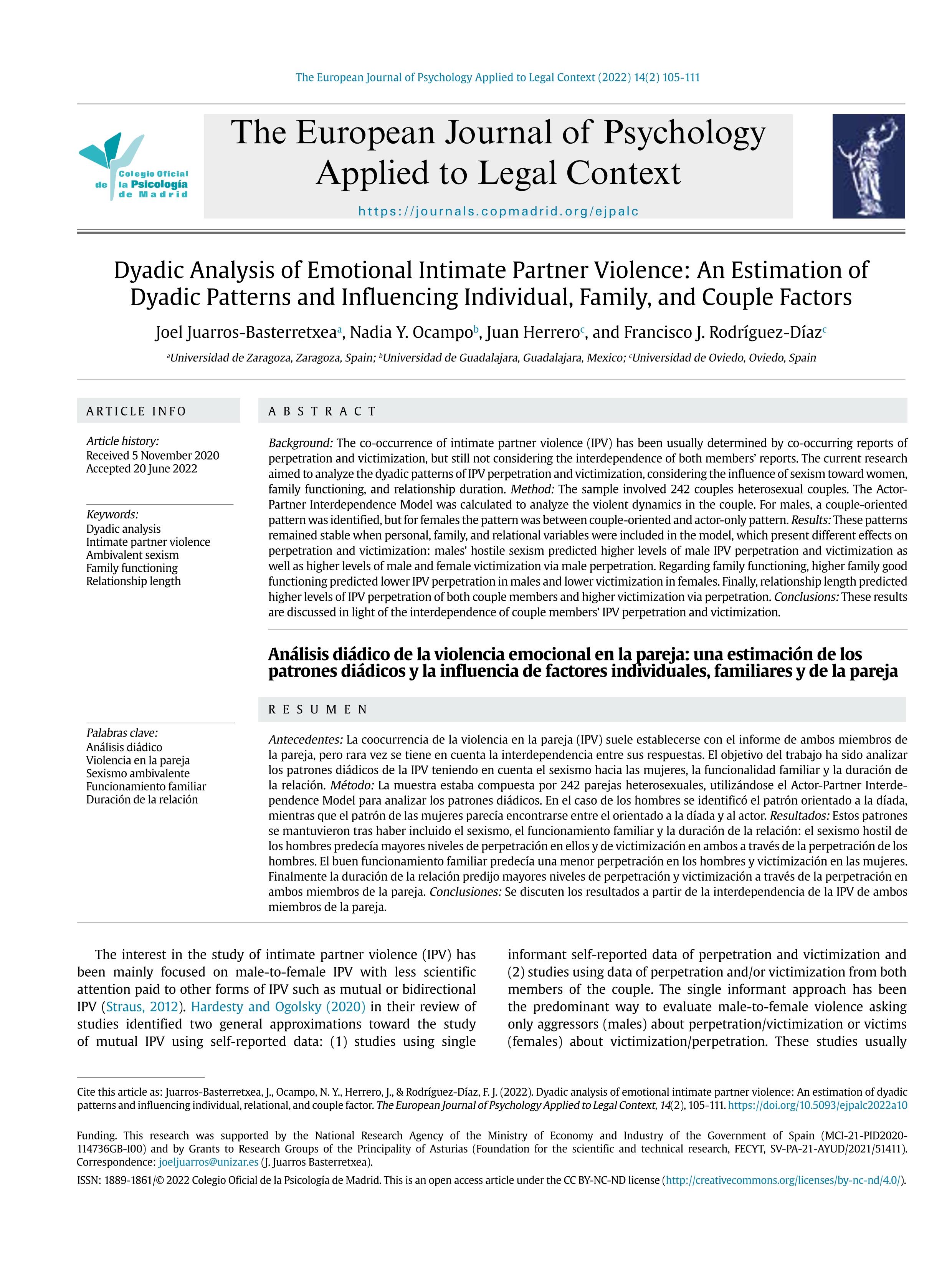Dyadic analysis of emotional intimate partner violence: an estimation of dyadic patterns and influencing individual, family, and couple factors