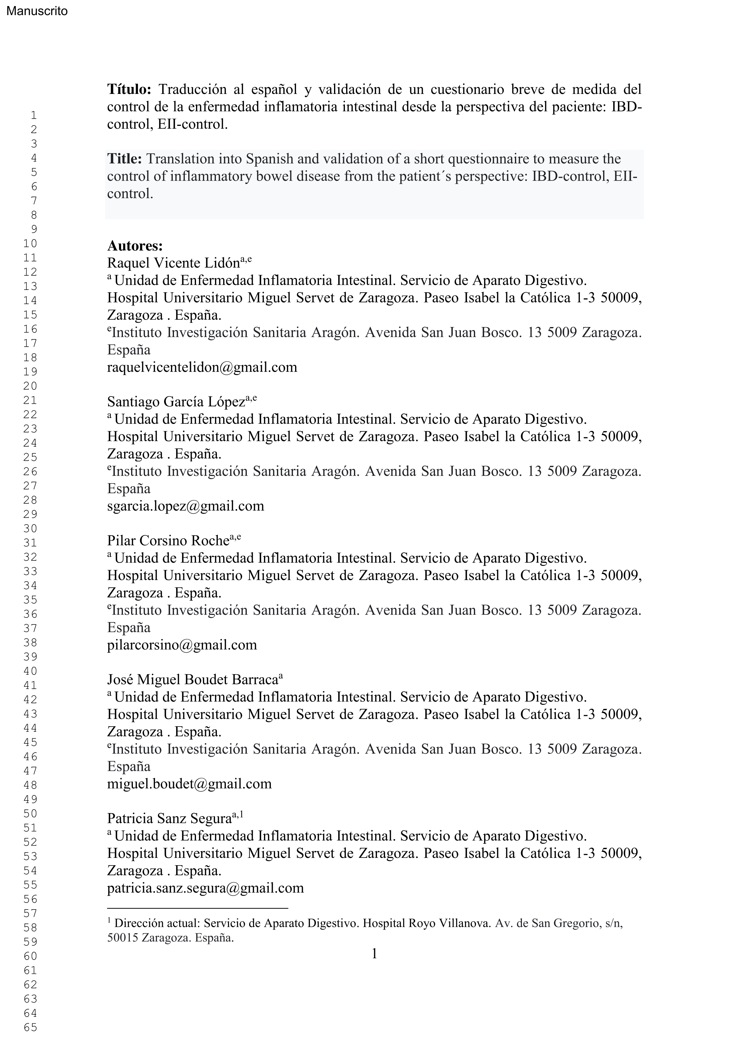 Traducción al español y validación de un cuestionario breve de medida del control de la enfermedad inflamatoria intestinal desde la perspectiva del paciente: IBD-Control, EII-Control