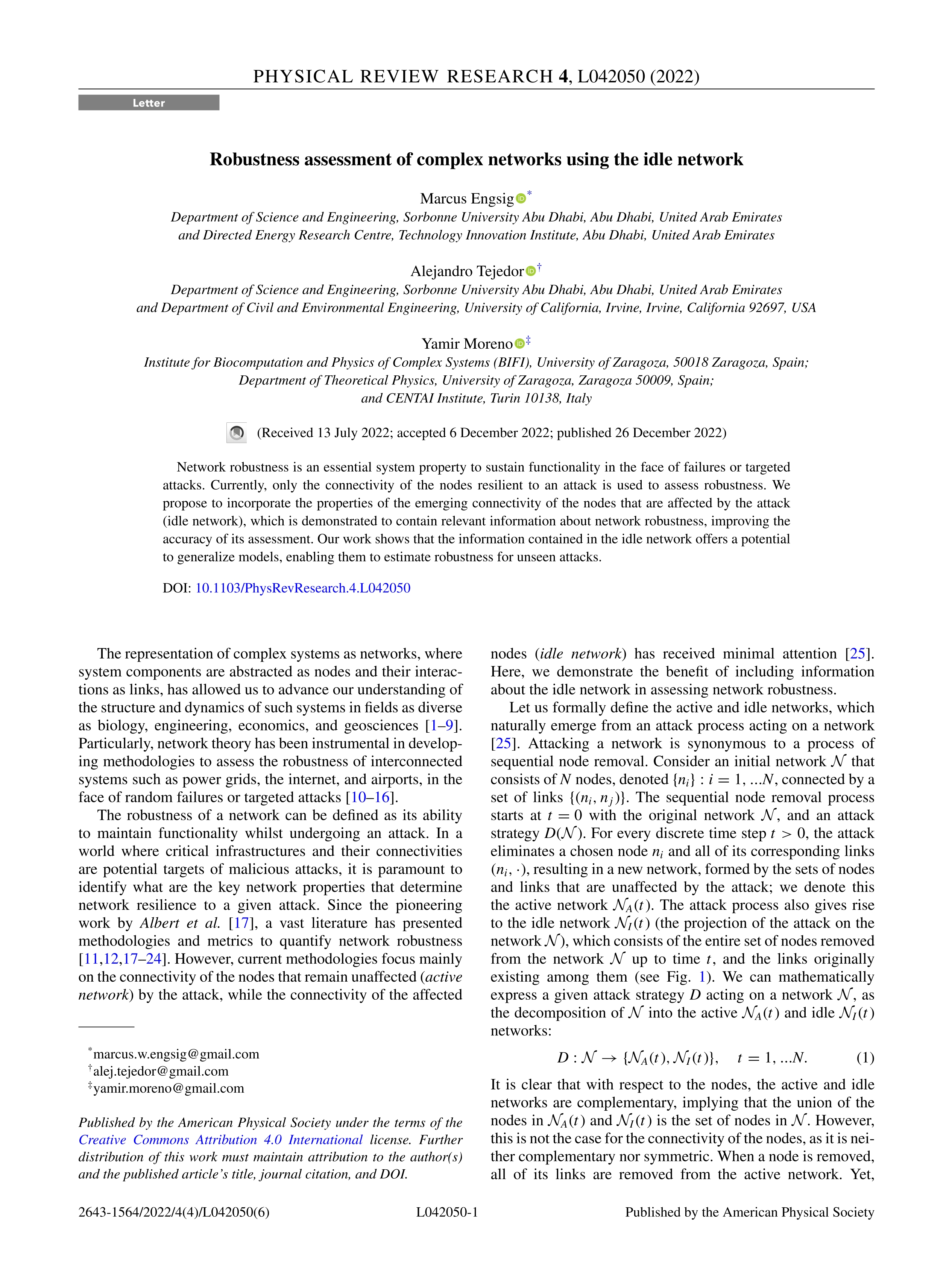 Robustness assessment of complex networks using the idle network