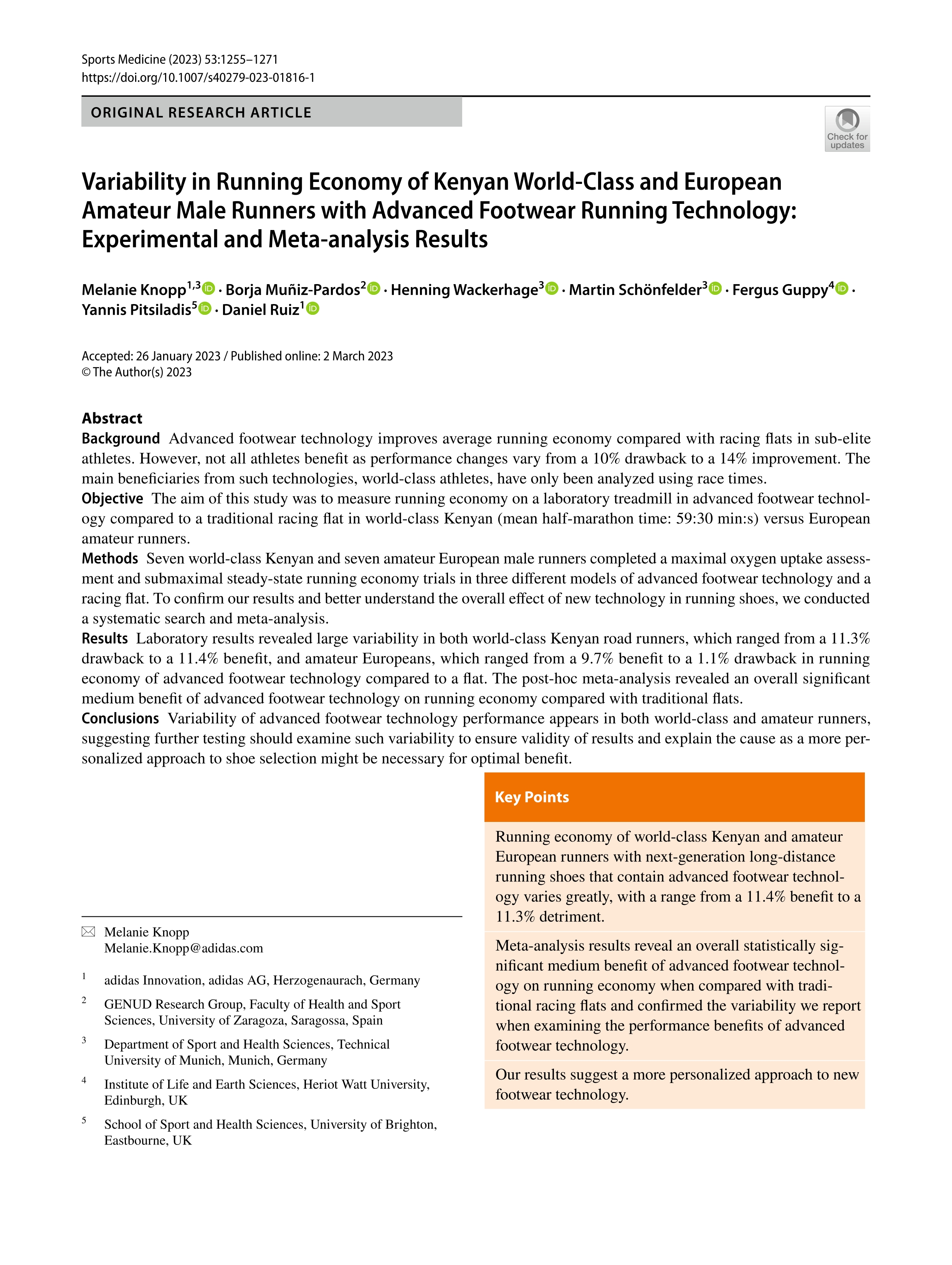 Variability in running economy of Kenyan world-class and European amateur male runners with advanced footwear running technology: experimental and meta-analysis results