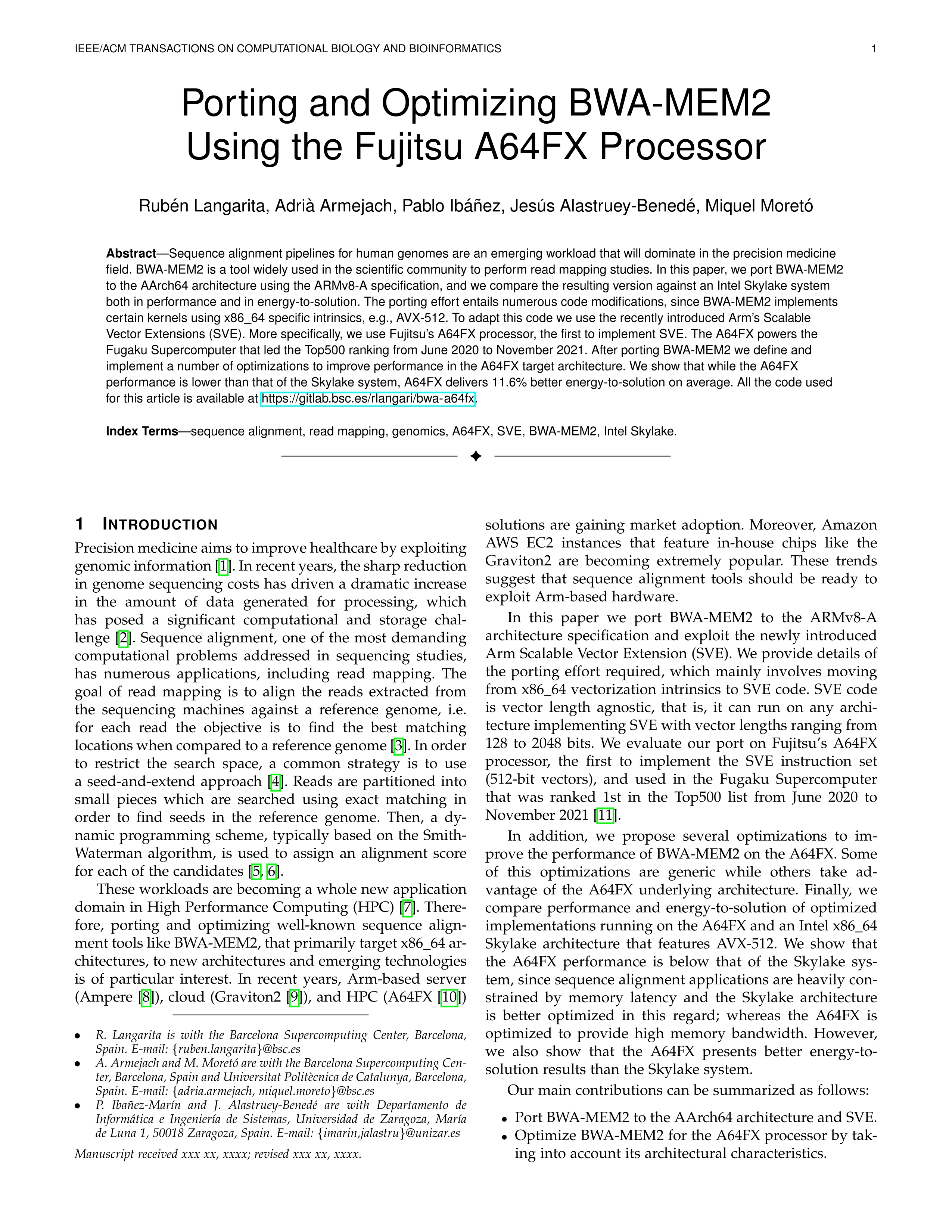 Porting and optimizing BWA-MEM2 using the Fujitsu A64FX processor