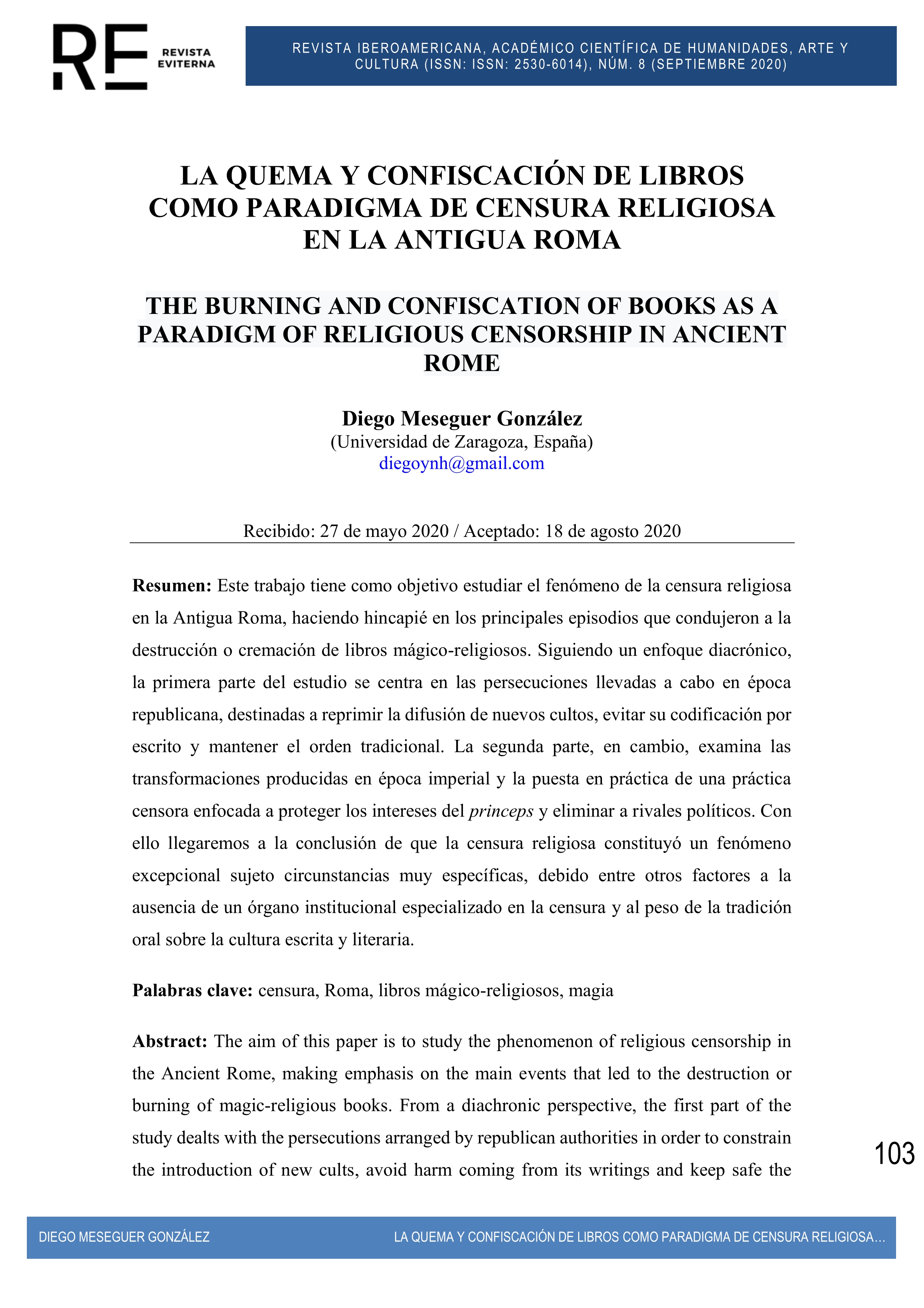 La quema y confiscación de libros como paradigma de censura religiosa en la Antigua Roma