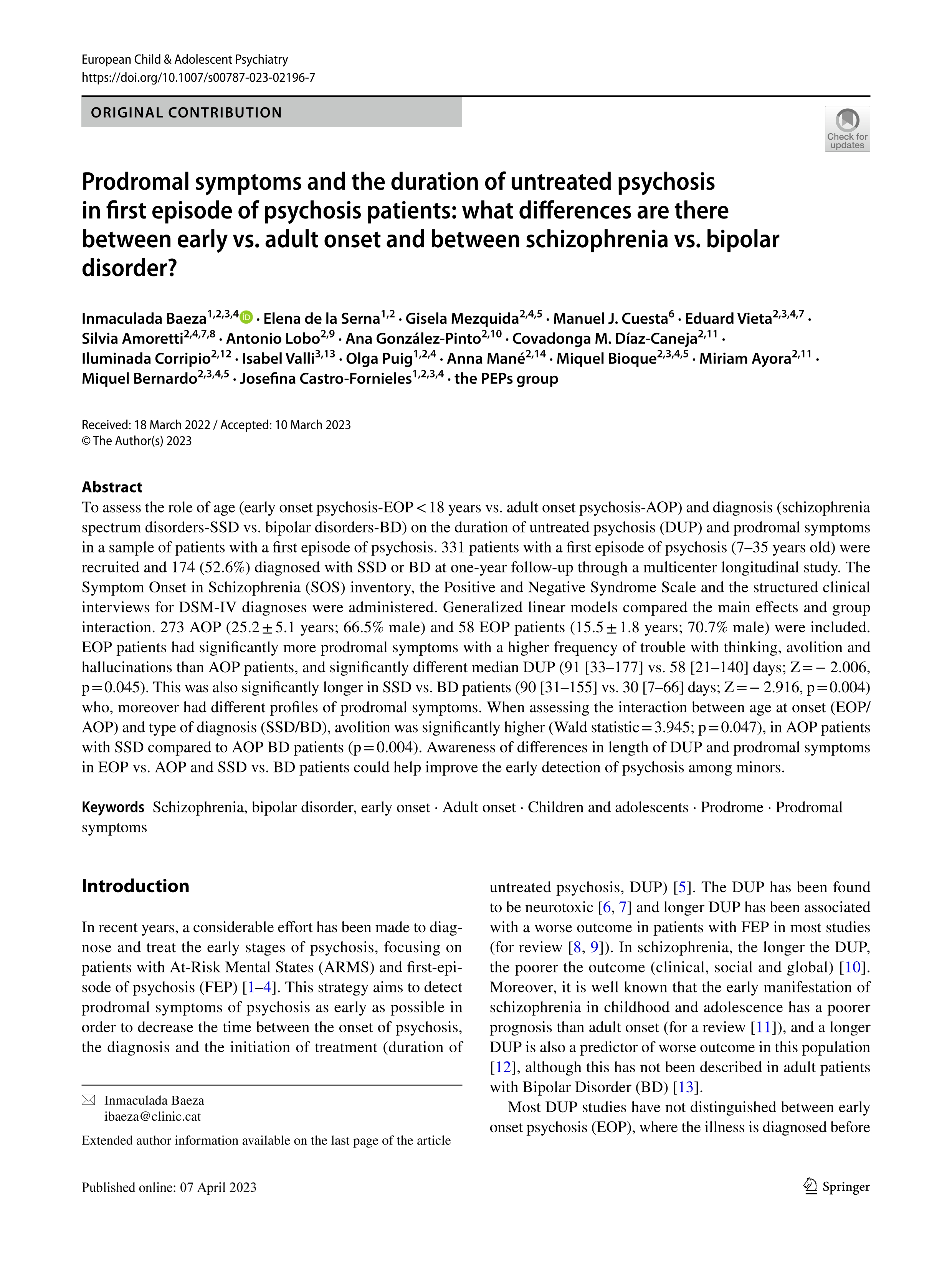 Prodromal symptoms and the duration of untreated psychosis in first episode of psychosis patients: what differences are there between early vs. adult onset and between schizophrenia vs. bipolar disorder?