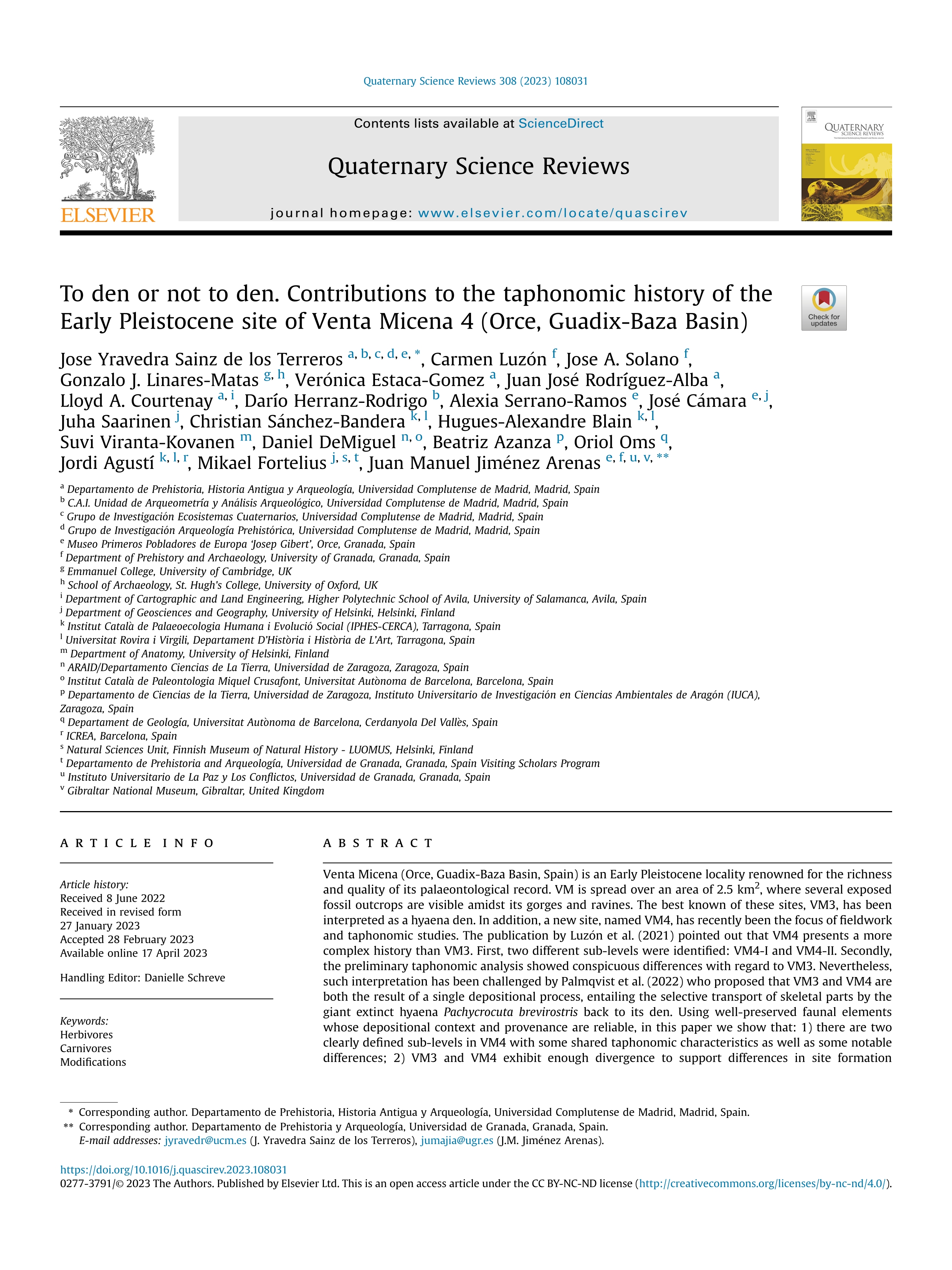 | Página principal > Artículos > To den or not to den. Contributions to the taphonomic history of the Early Pleistocene site of Venta Micena 4 (Orce, Guadix-Baza Basin) |
