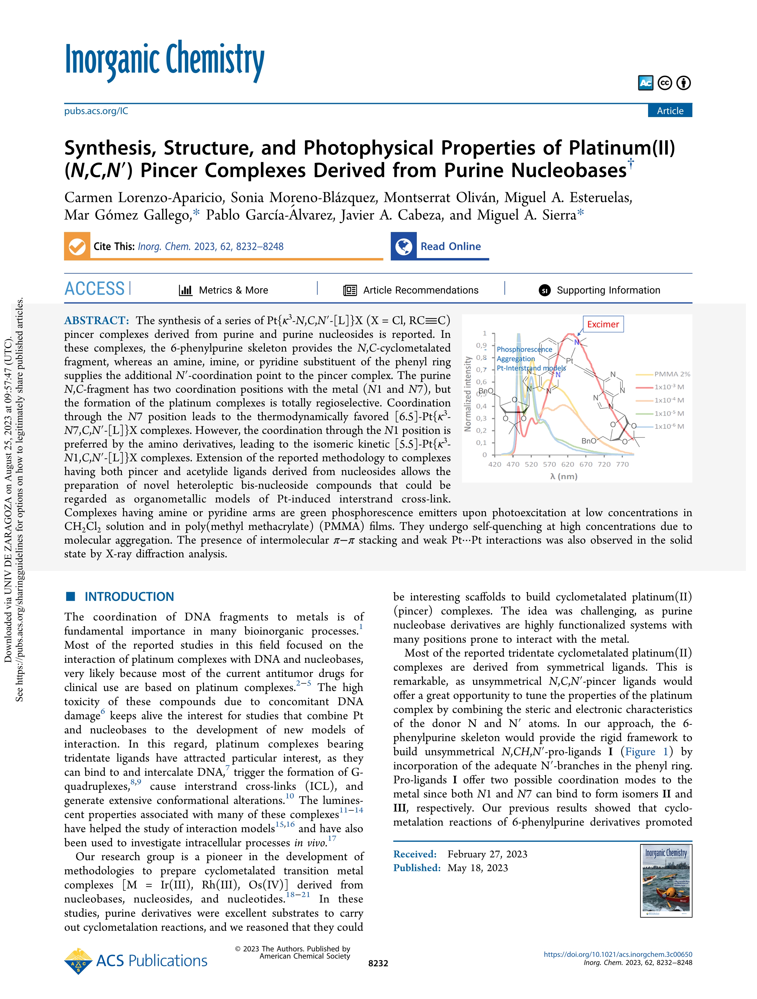 Synthesis, structure, and photophysical properties of platinum(II) (N, C, N) pincer complexes derived from purine nucleobases