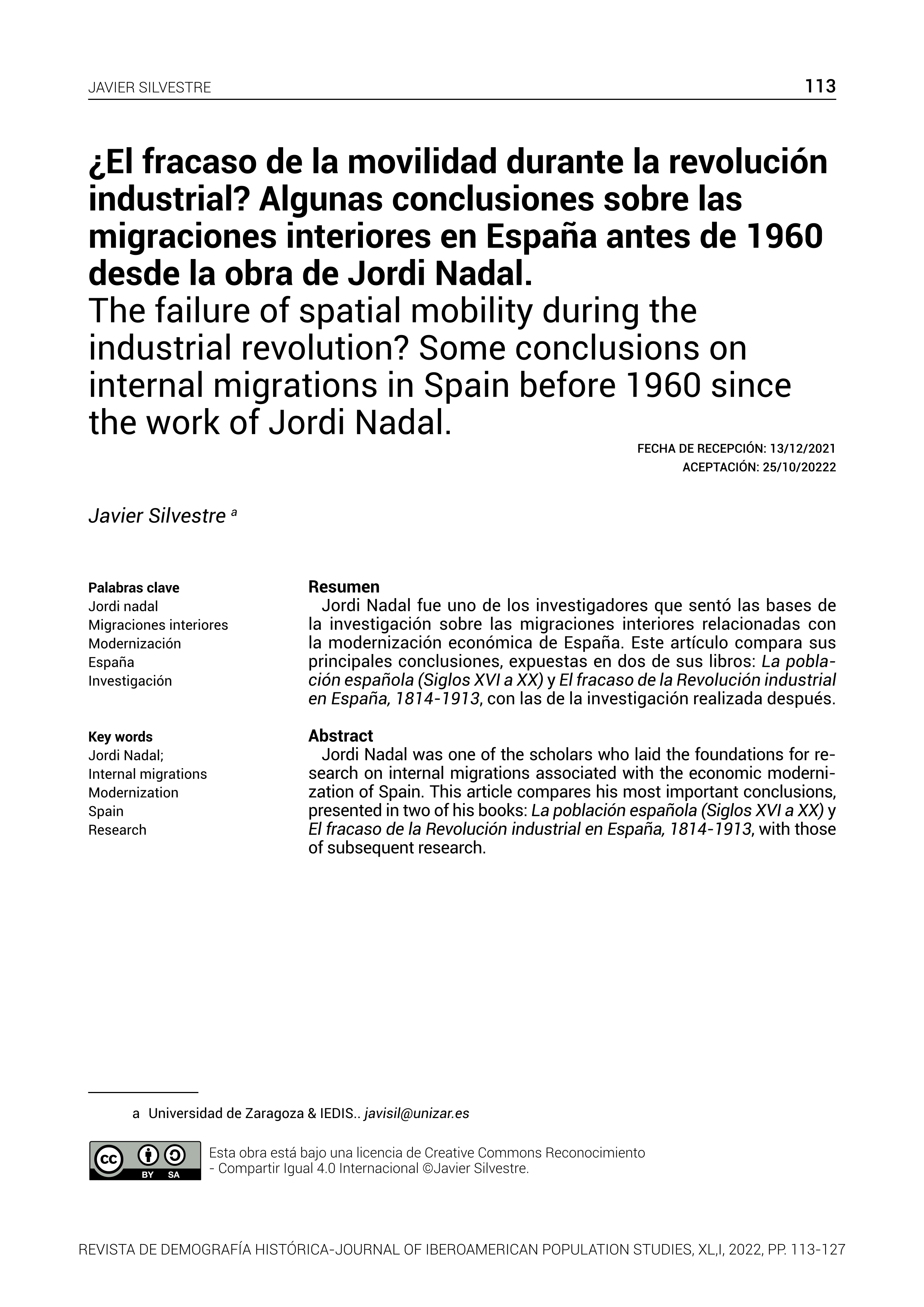 ¿El fracaso de la movilidad durante la revolución industrial? Algunas conclusiones sobre las migraciones interiores en España antes de 1960 desde la obra de Jordi Nadal