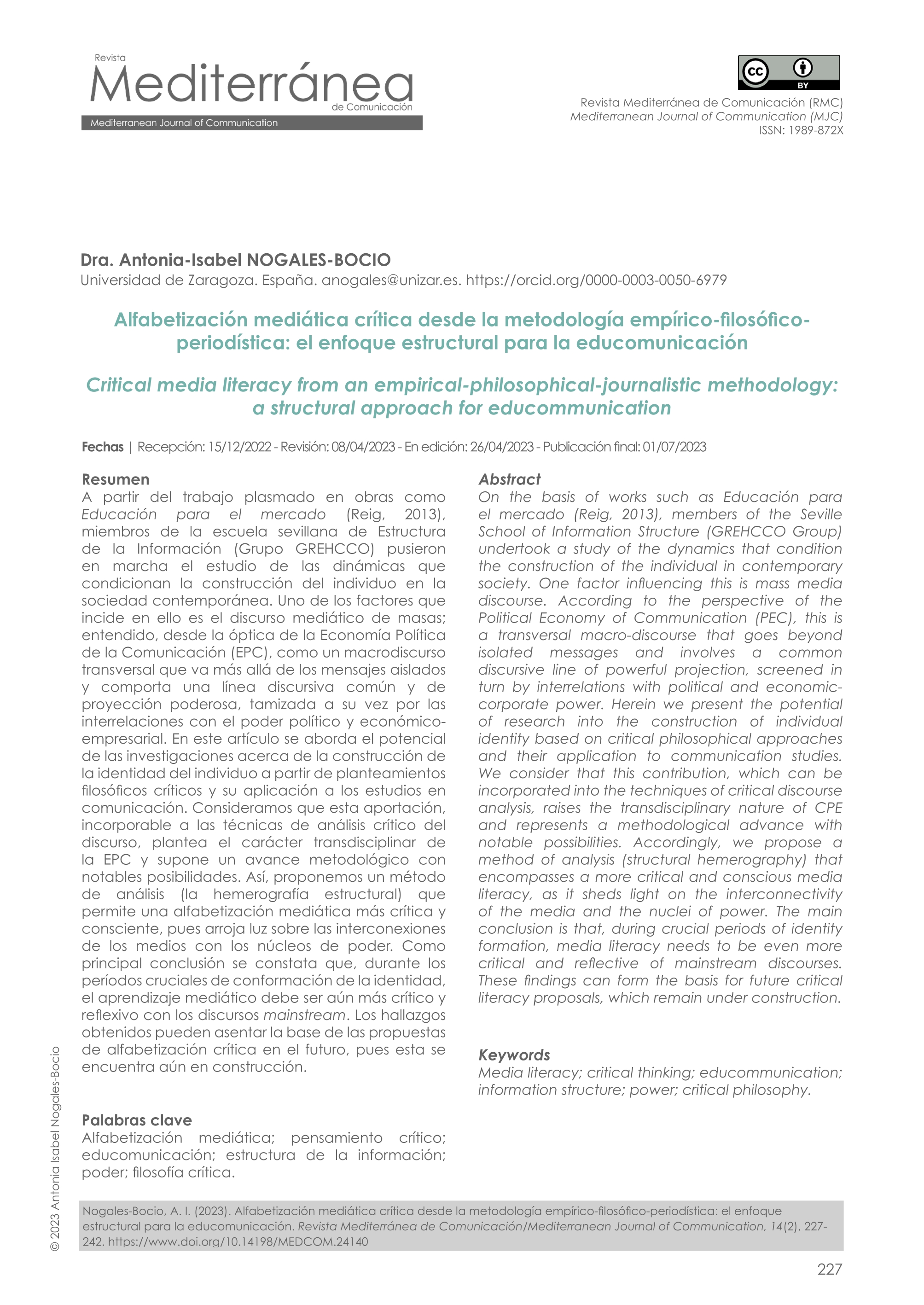 Alfabetización mediática crítica desde la metodología empírico-filosófico-periodística: el enfoque estructural para la educomunicación