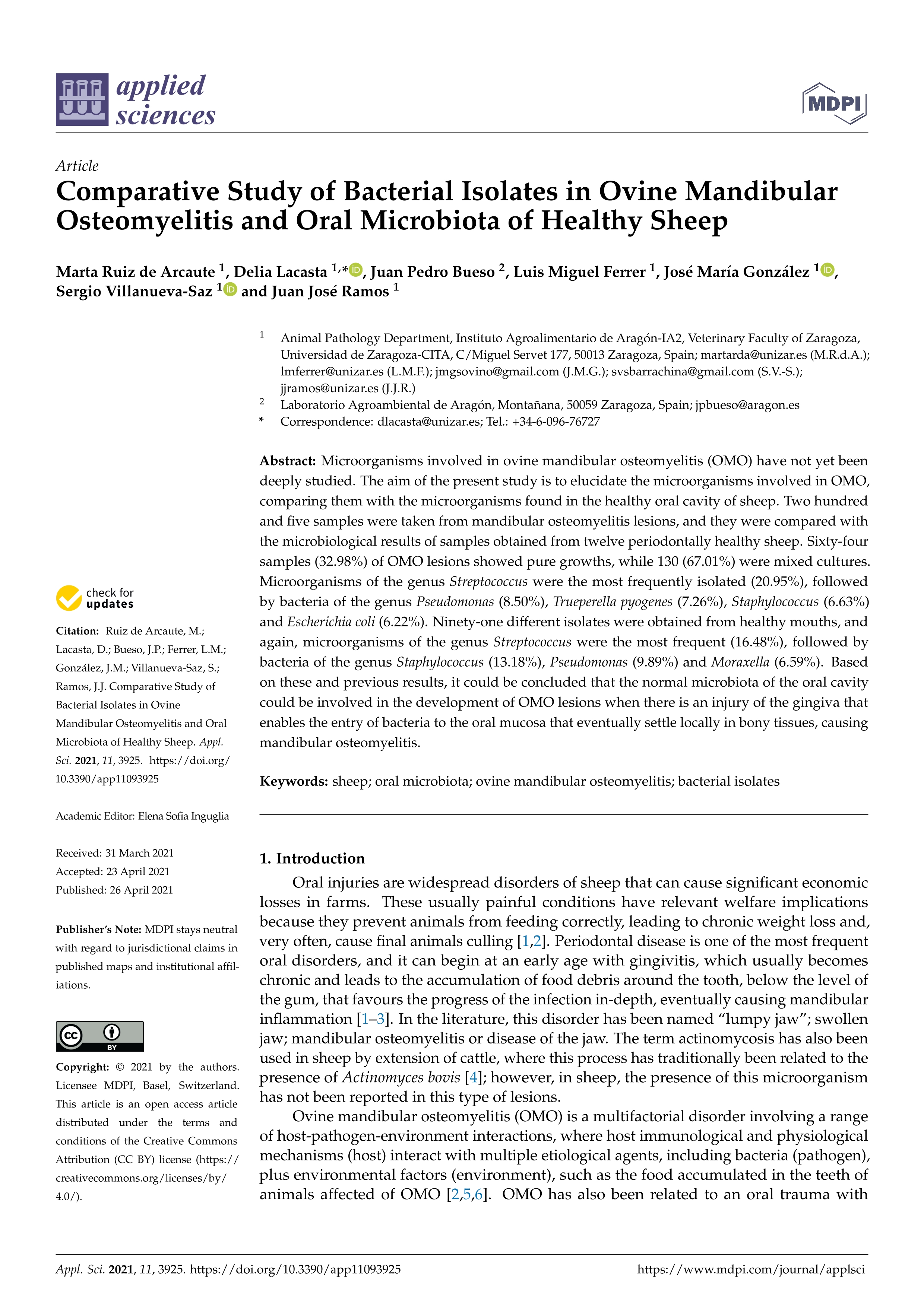 | Página principal > Artículos > Comparative Study of Bacterial Isolates in Ovine Mandibular Osteomyelitis and Oral Microbiota of Healthy Sheep |