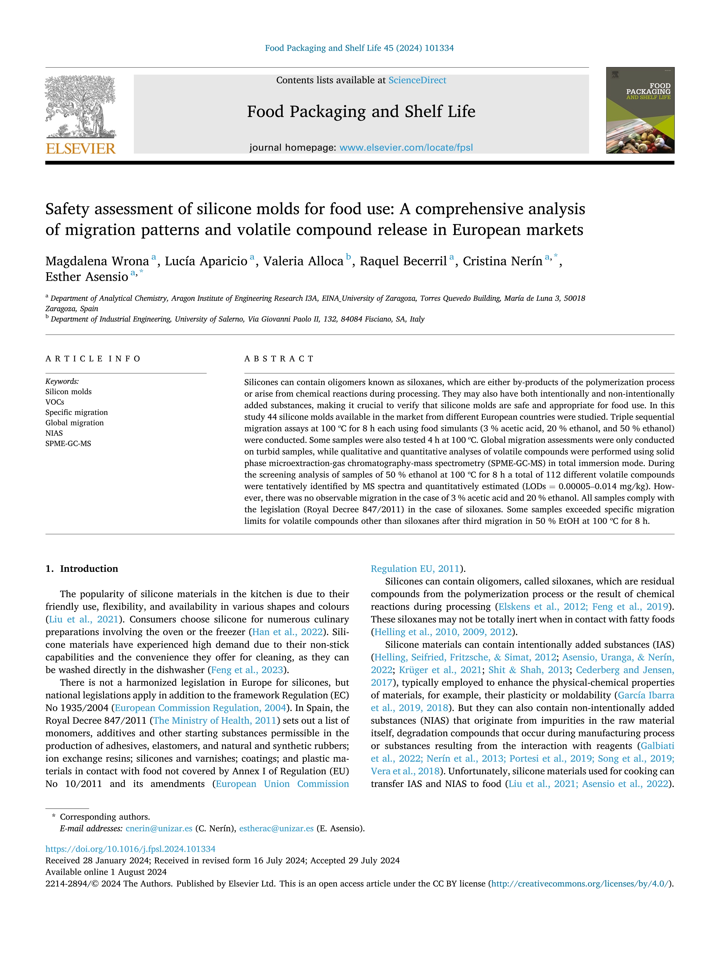 Safety assessment of silicone molds for food use: A comprehensive analysis of migration patterns and volatile compound release in European markets
