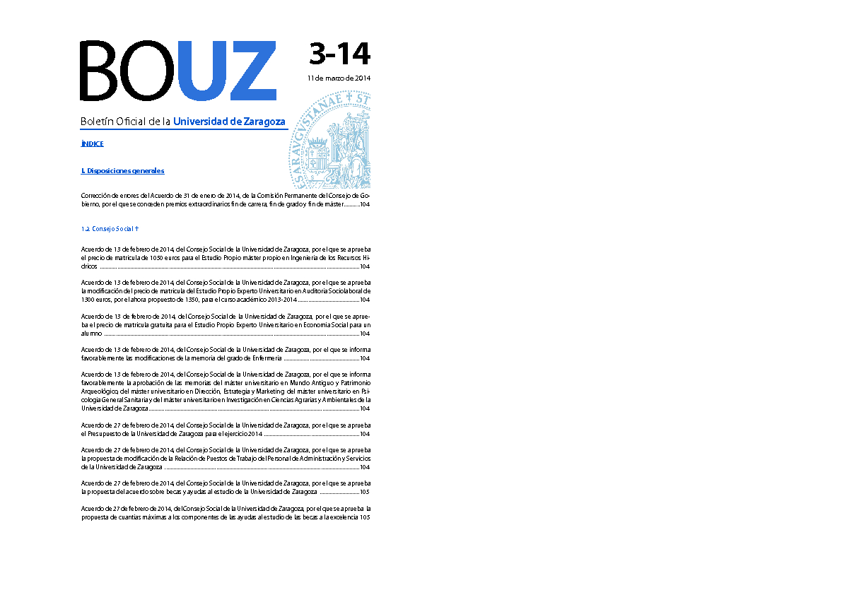 Boletín Oficial de la Universidad de Zaragoza - BOUZ 03-2014 (11 marzo)