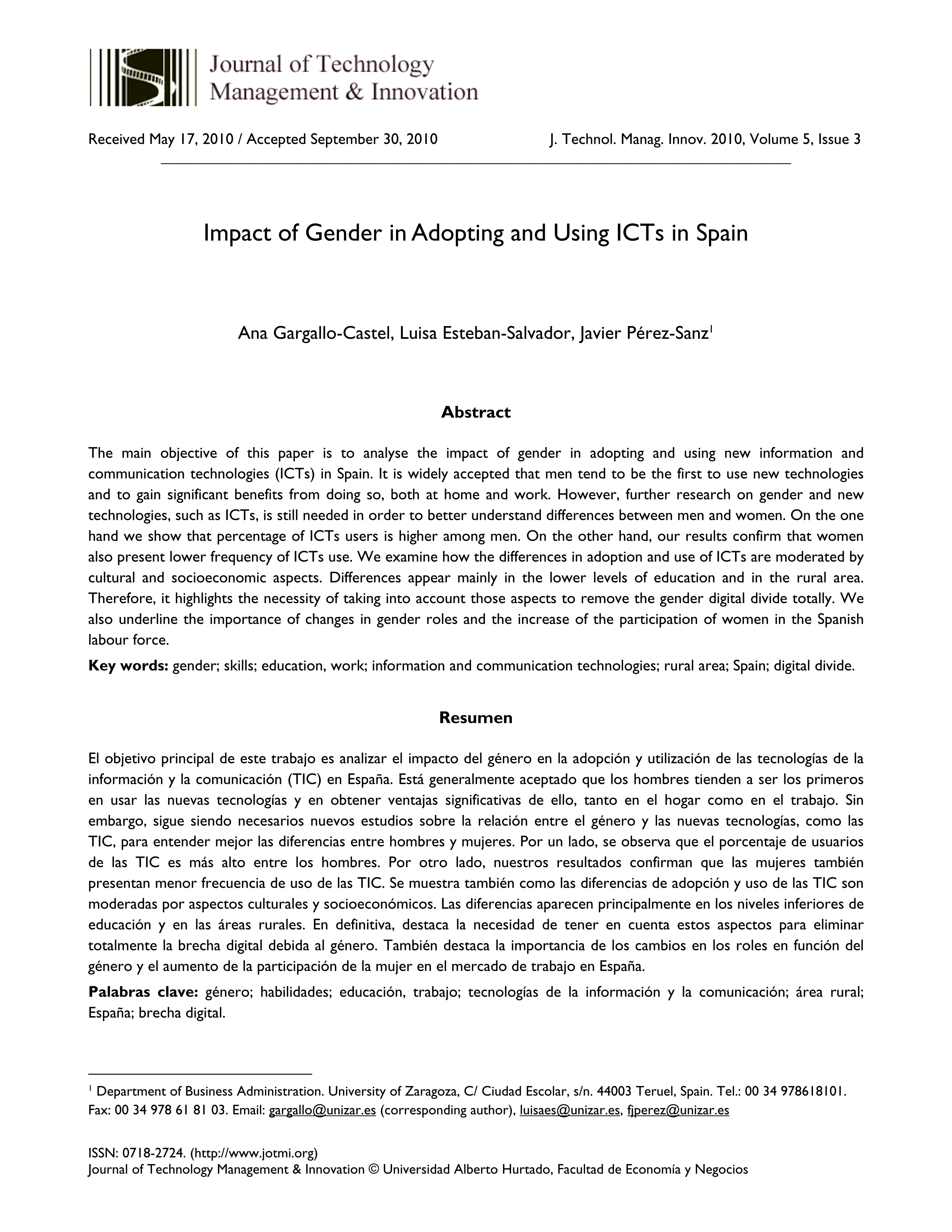 | Página principal > Artículos > Impact of gender in adopting and using ICTs in Spain |