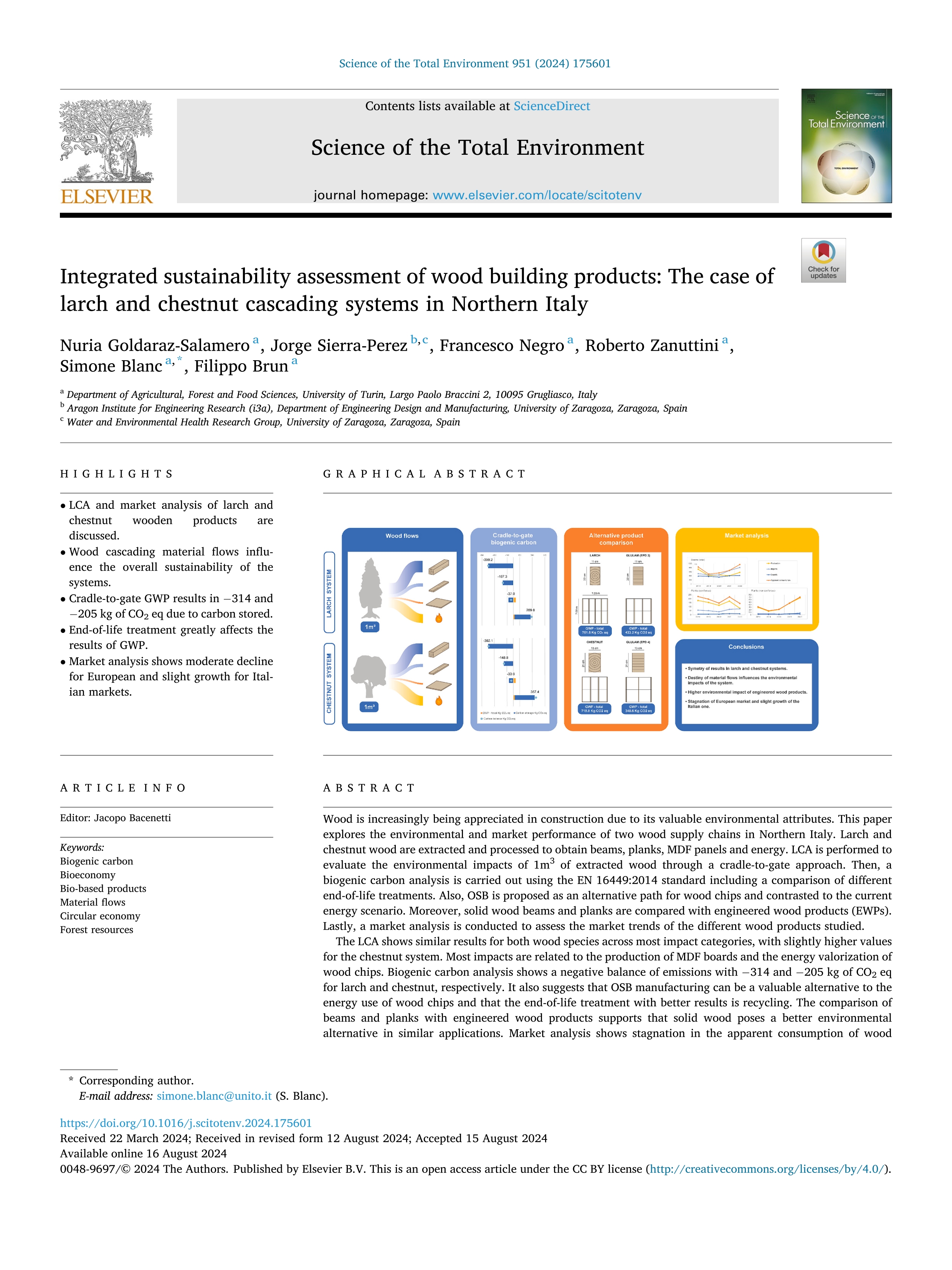 | Página principal > Artículos > Integrated sustainability assessment of wood building products: The case of larch and chestnut cascading systems in Northern Italy |