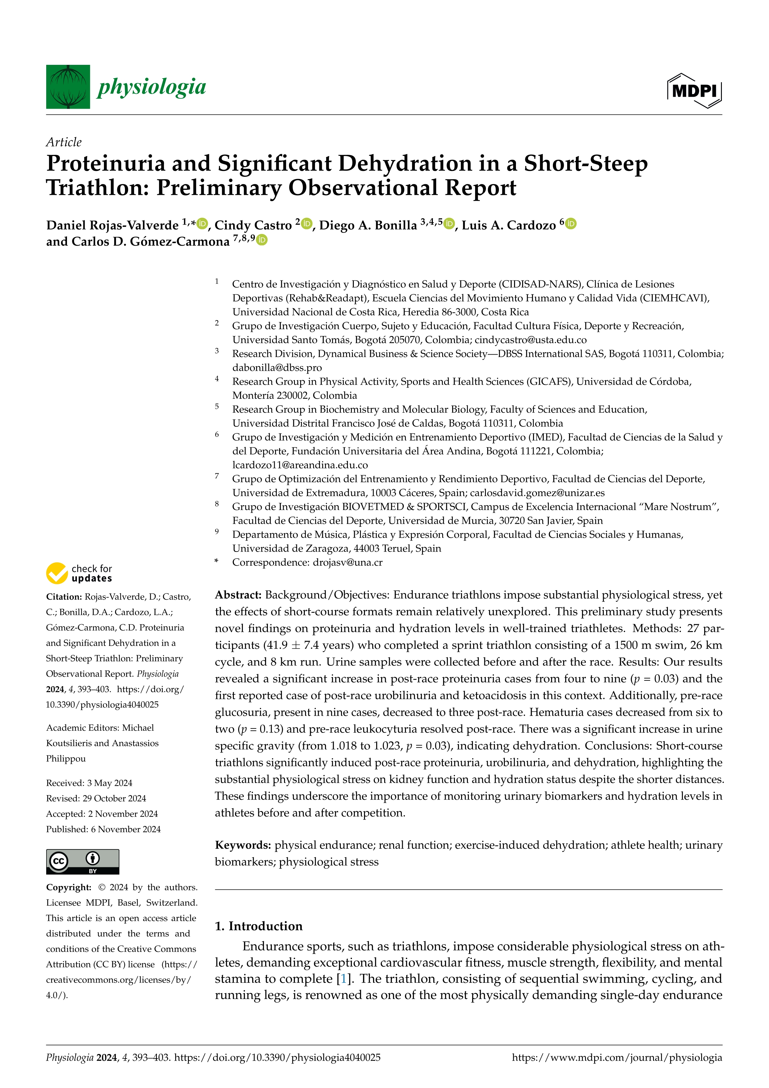 Proteinuria and Significant Dehydration in a Short-Steep Triathlon: Preliminary Observational Report