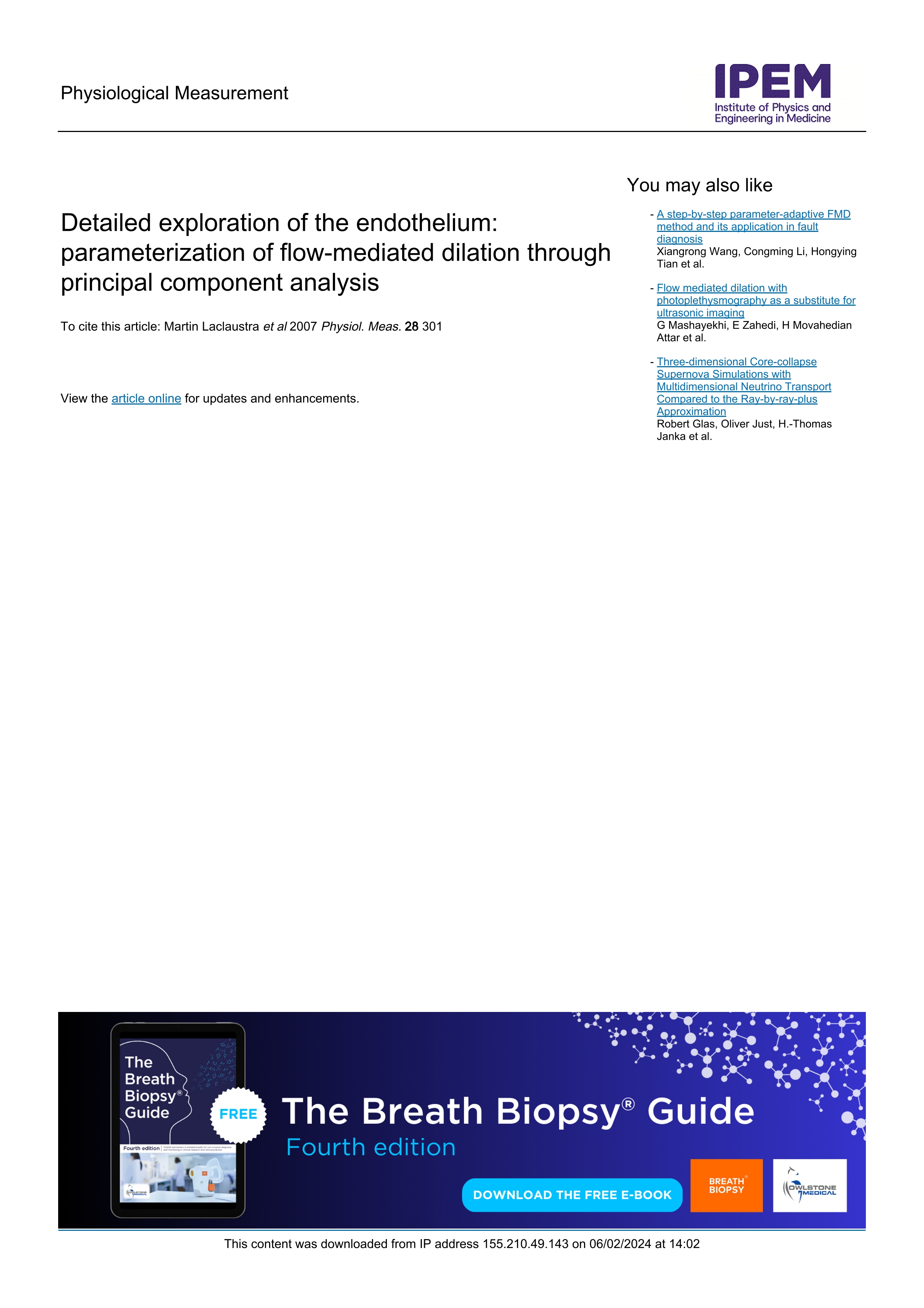 Página principal > Artículos > Detailed Exploration of the Endothelium: Parameterization of Flow-Mediated Dilation through Principal Component Analysis