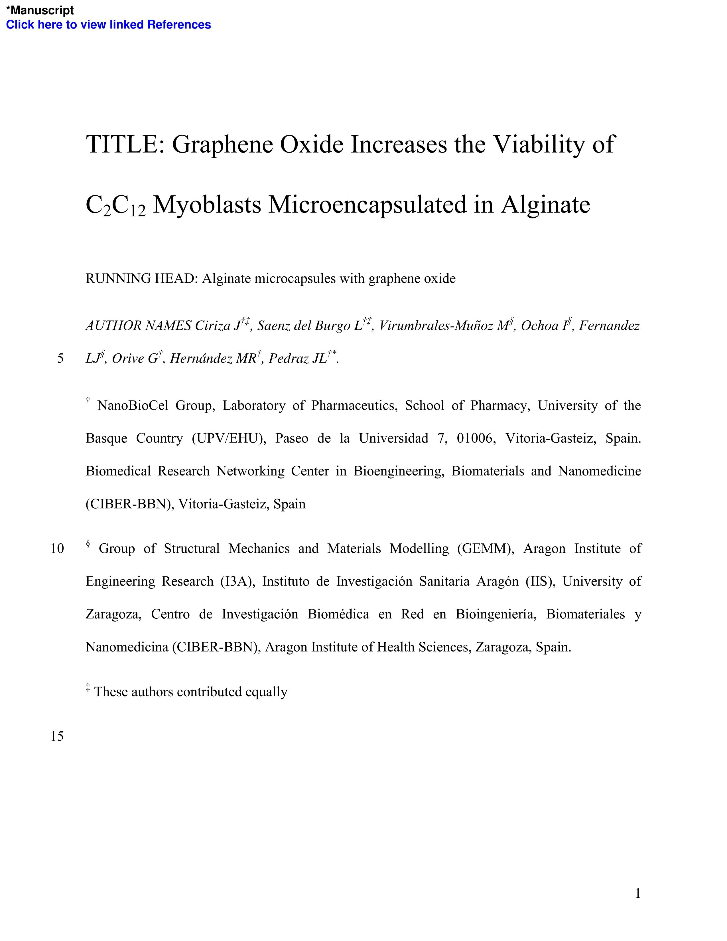 | Página principal > Artículos > Graphene oxide increases the viability of C2C12 myoblasts microencapsulated in alginate |