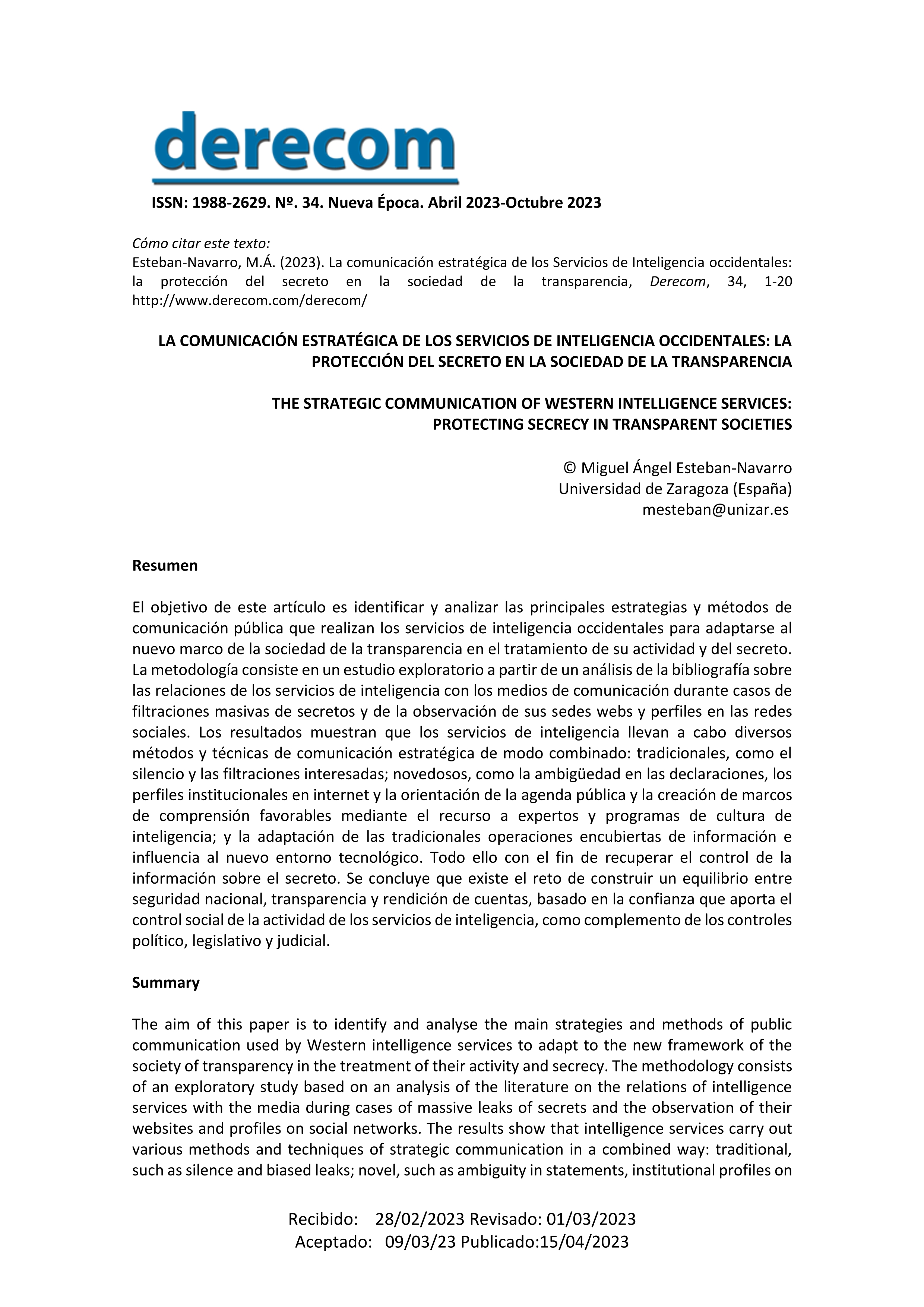 | Home > Articles > La comunicación estratégica de los servicios de inteligencia occidentales: la protección del secreto en la sociedad de la transparencia |