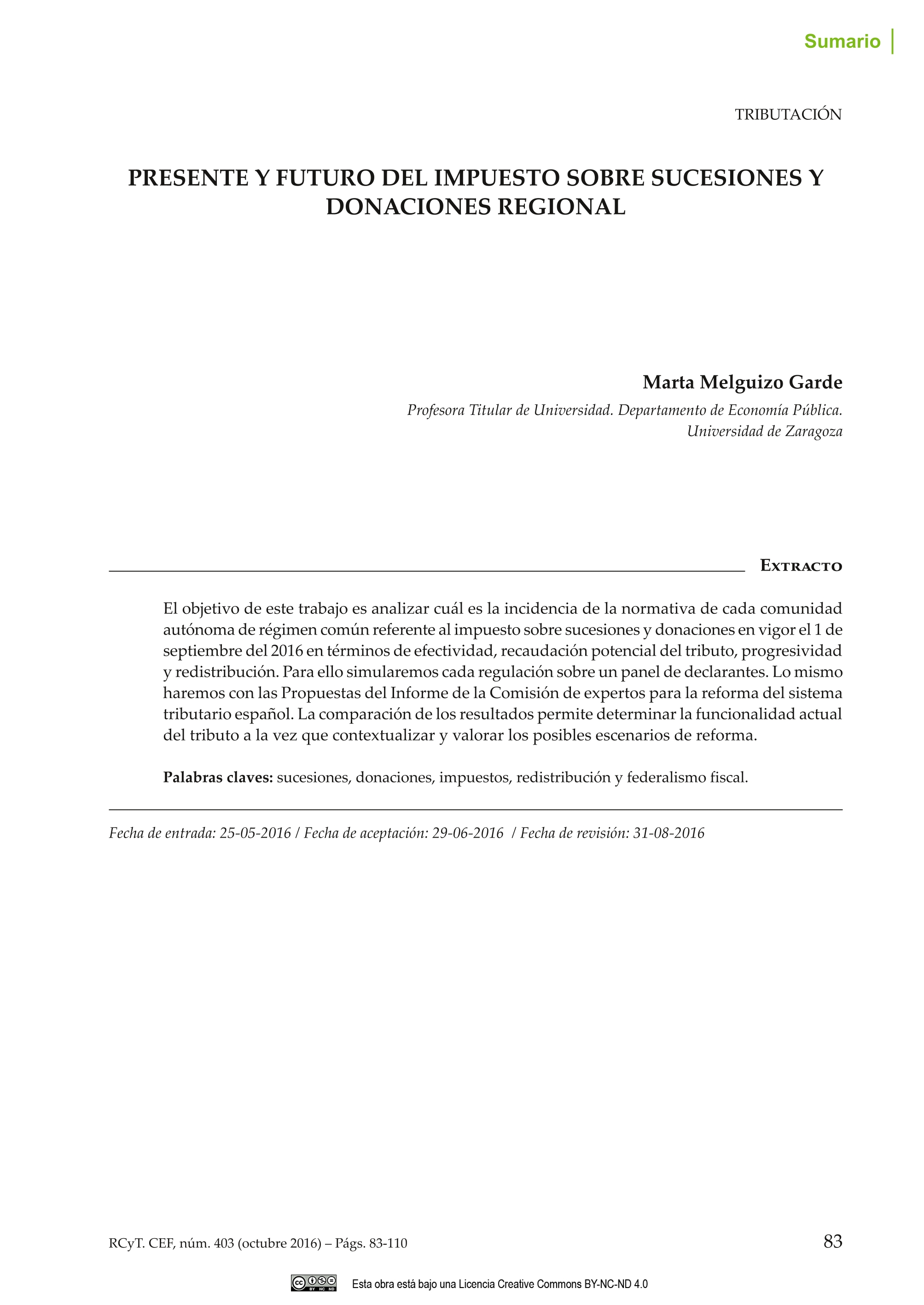 Resumen: El objetivo de este trabajo es analizar cuál es la incidencia de la normativa de cada comunidad autónoma de régimen común referente al impuesto sobre sucesiones y donaciones en vigor el 1 de septiembre del 2016 en términos de efectividad, recaudación potencial del tributo, progresividad y redistribución. Para ello simularemos cada regulación sobre un panel de declarantes. Lo mismo haremos con las Propuestas del Informe de la Comisión de expertos para la reforma del sistema tributario español. La comparación de los resultados permite determinar la funcionalidad actual del tributo a la vez que contextualizar y valorar los posibles escenarios de reforma. Idioma: Español DOI: 10.51302/rcyt.2016.4753 Año: 2016 Publicado en: Estudios financieros. Revista de contabilidad y tributación. Comentarios, casos prácticos 403 (2016), 83-110 ISSN: 1138-9540 Tipo y forma: Artículo (Versión definitiva) Área (Departamento): Área Economía Aplicada (Dpto. Estruc.Hª Econ.y Eco.Pb.)