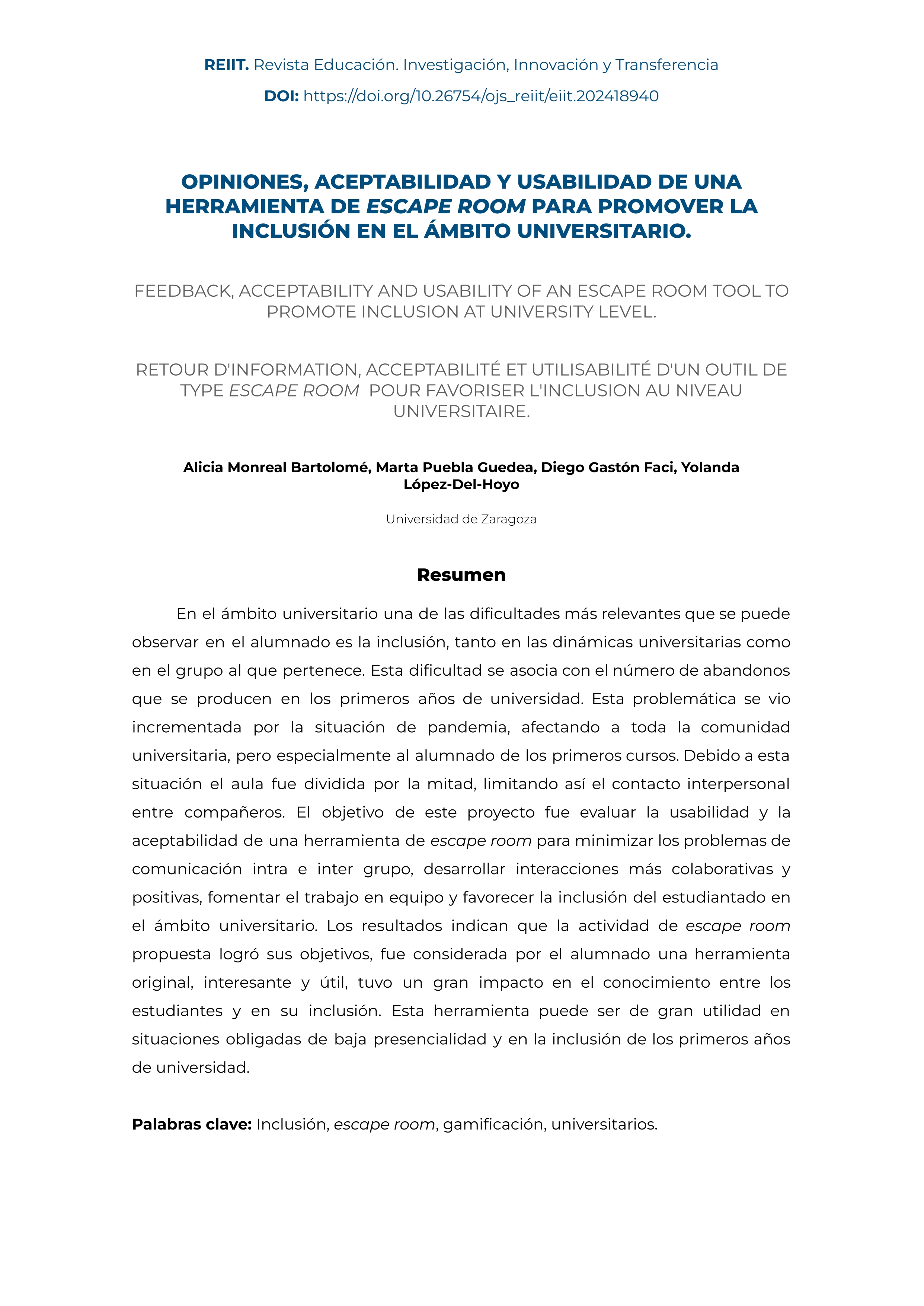 | Página principal > Artículos > Opiniones, aceptabilidad y usabilidad de una herramienta de escape room para promover la inclusión en el ámbito universitario |