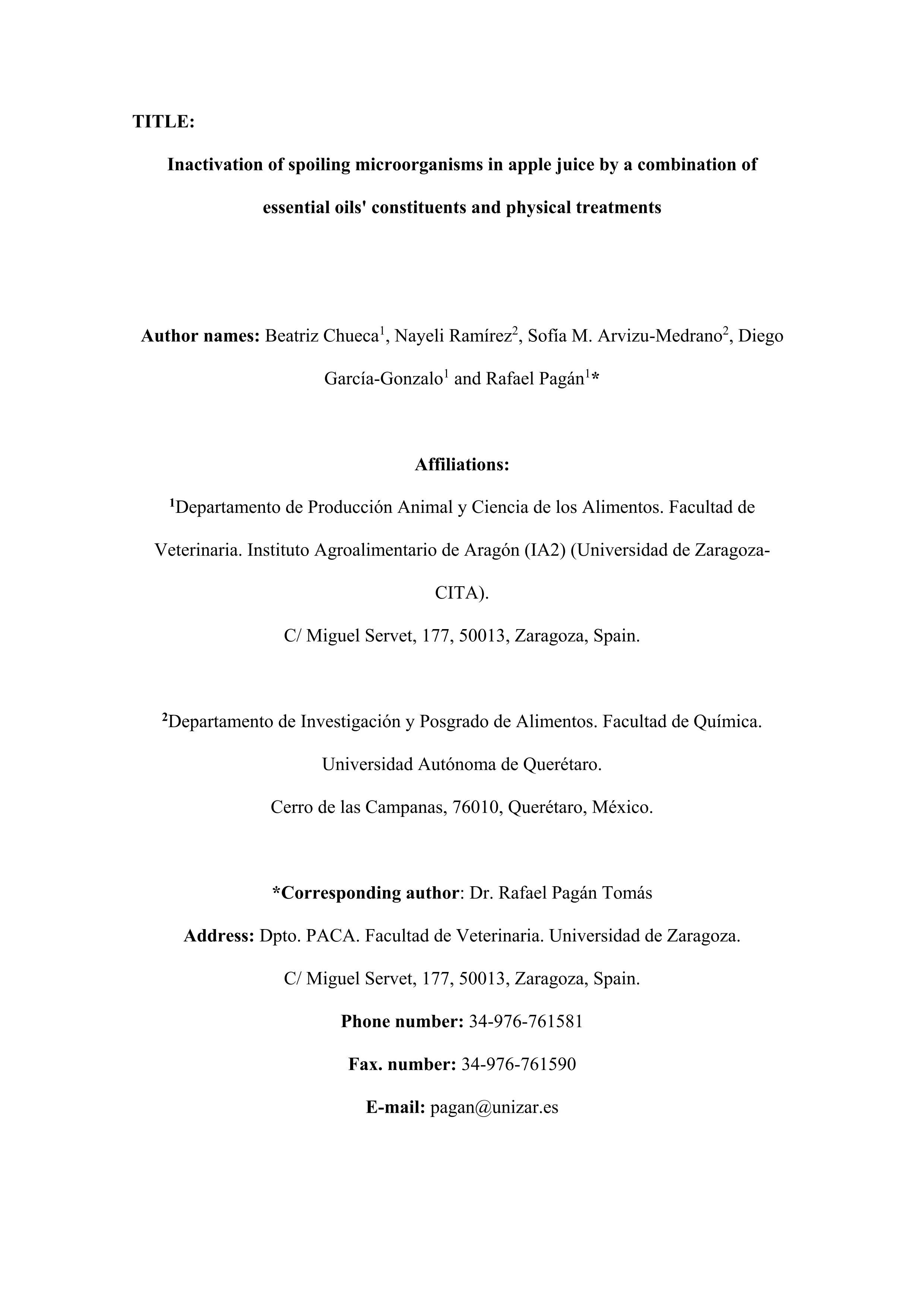 | Página principal > Artículos > Inactivation of spoiling microorganisms in apple juice by a combination of essential oils' constituents and physical treatments |