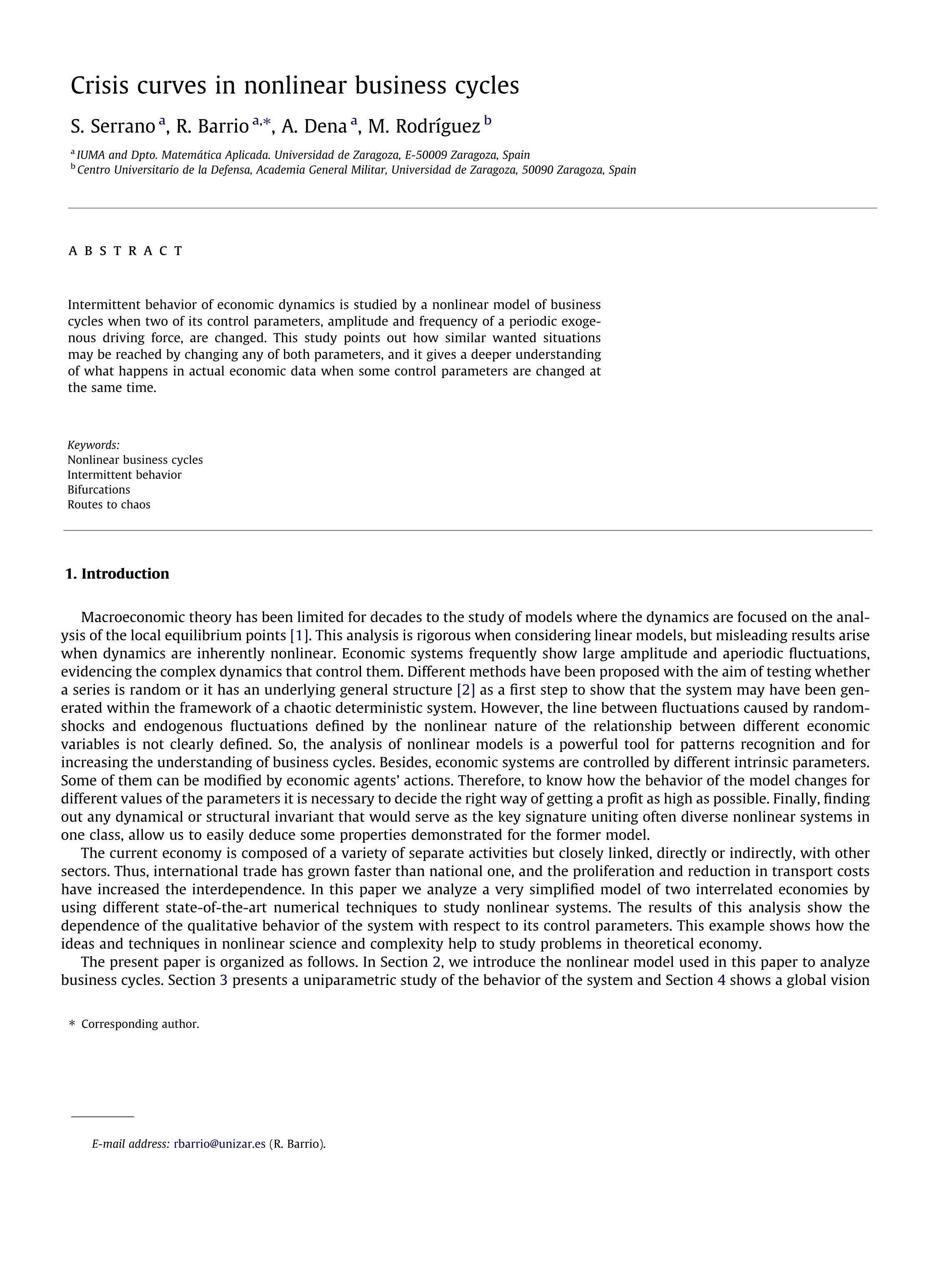 Crisis curves in nonlinear business cycles